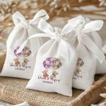 Μοντέρνες και Πρωτότυπες Μπομπονιέρες Βάπτισης με Πουγκί από Καμβά | Σετ Πουγκί, Εσωτερικό Τούλι & Κορδέλα Σατέν | Premium ποιότητα
