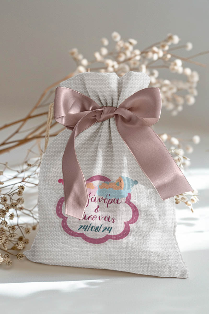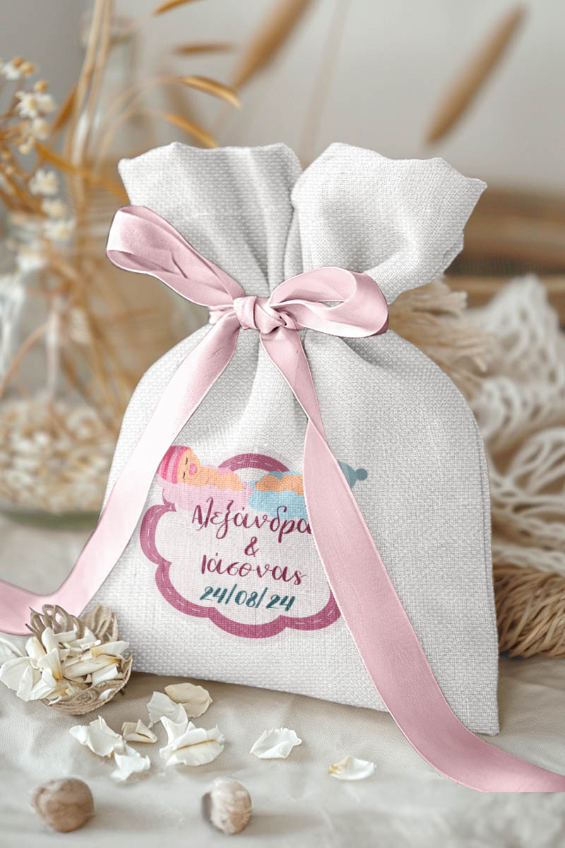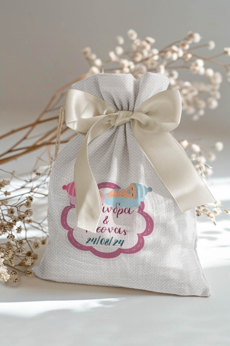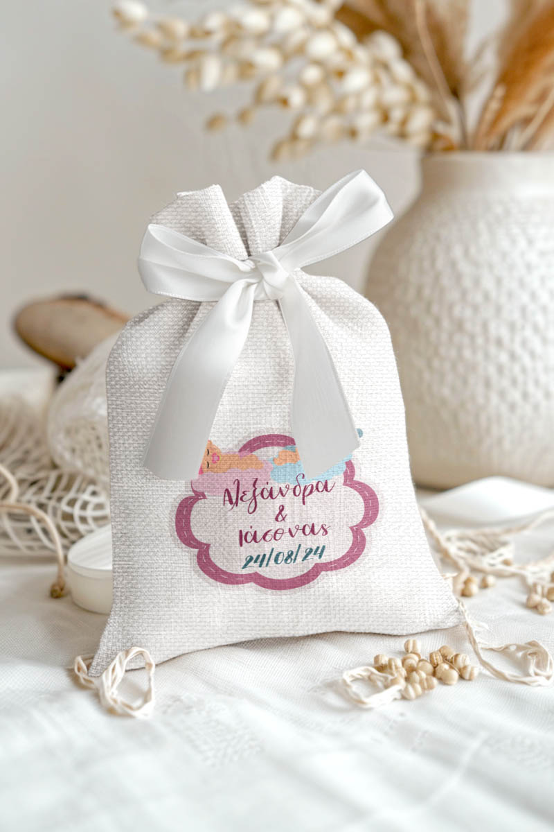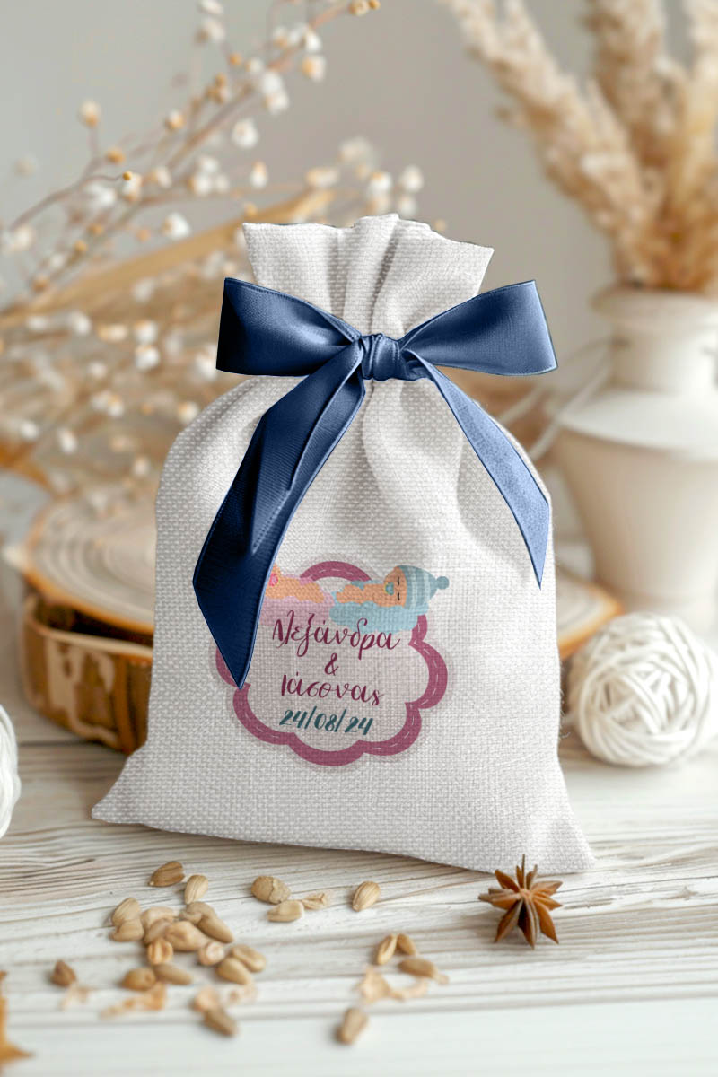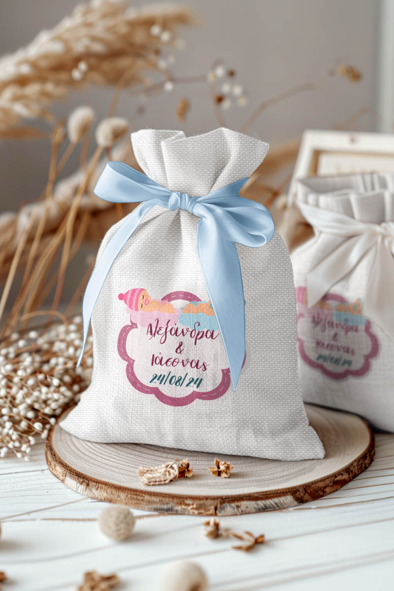 1.59€Μοντέρνες και Πρωτότυπες Μπομπονιέρες Βάπτισης με Πουγκί από Καμβά | Σετ Πουγκί, Εσωτερικό Τούλι & Κορδέλα Σατέν | Premium ποιότητα