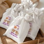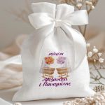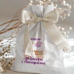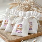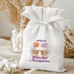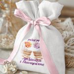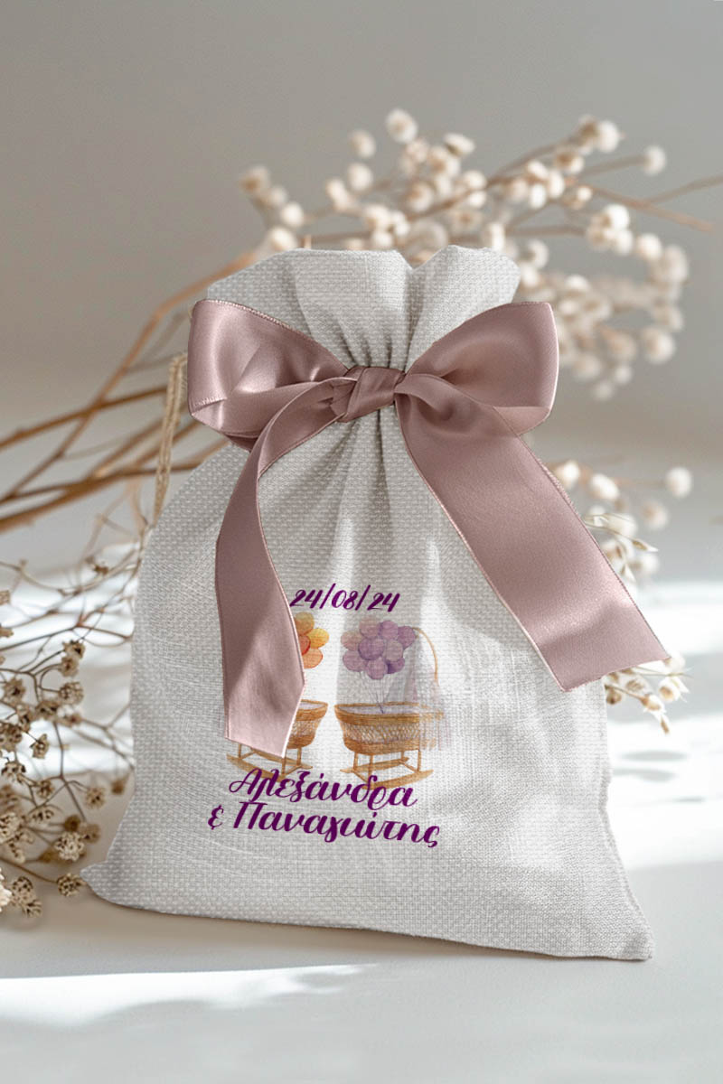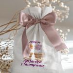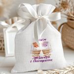 • Κάθε σετ μπομπονιέρας περιλαμβάνει ένα προσωποποιημένο πουγκί από ύφανση καμβά, με δυνατότητα επιλογής χρώματος και σχεδίου.