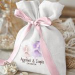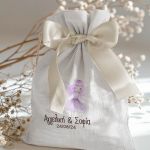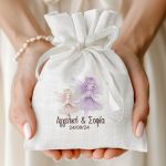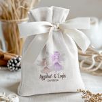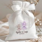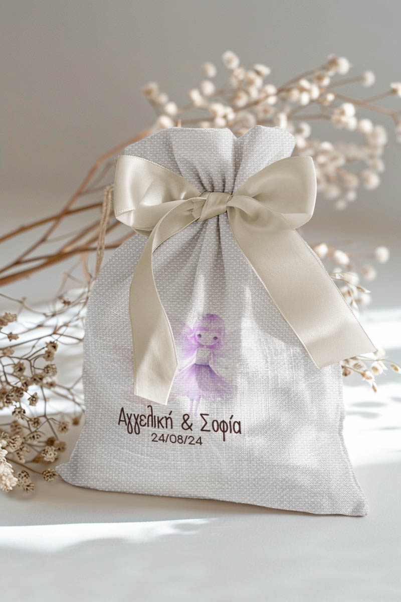 • Κάθε σετ μπομπονιέρας περιλαμβάνει ένα προσωποποιημένο πουγκί από ύφανση καμβά, με δυνατότητα επιλογής χρώματος και σχεδίου.