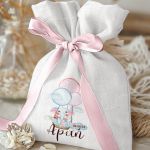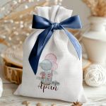 Μοντέρνες και Πρωτότυπες Μπομπονιέρες Βάπτισης με Πουγκί από Καμβά | Σετ Πουγκί, Εσωτερικό Τούλι & Κορδέλα Σατέν | Premium ποιότητα