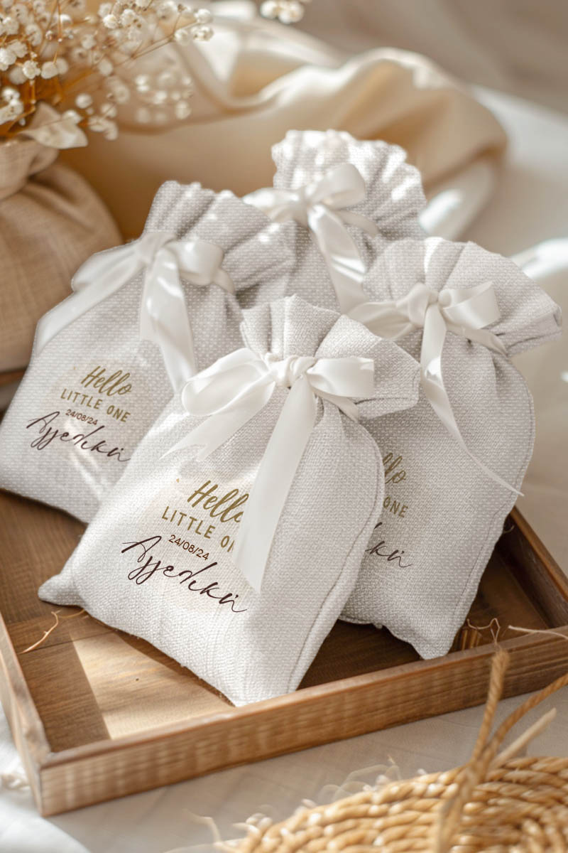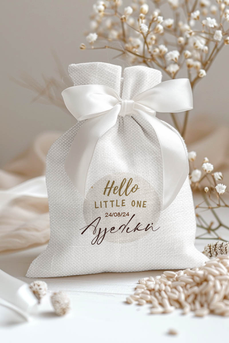 1.59€Μοντέρνες και Πρωτότυπες Μπομπονιέρες Βάπτισης με Πουγκί από Καμβά | Σετ Πουγκί, Εσωτερικό Τούλι & Κορδέλα Σατέν | Premium ποιότητα
