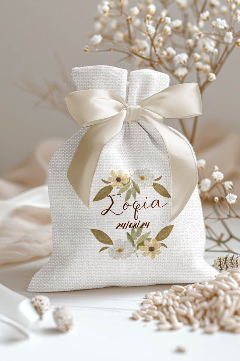 1.59€Μοντέρνες και Πρωτότυπες Μπομπονιέρες Βάπτισης με Πουγκί από Καμβά | Σετ Πουγκί, Εσωτερικό Τούλι & Κορδέλα Σατέν | Premium ποιότητα