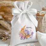 Μοντέρνες και Πρωτότυπες Μπομπονιέρες Βάπτισης με Πουγκί από Καμβά | Σετ Πουγκί, Εσωτερικό Τούλι & Κορδέλα Σατέν | Premium ποιότητα