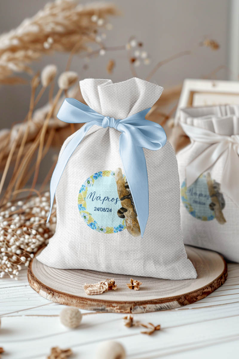1.59€Μοντέρνες και Πρωτότυπες Μπομπονιέρες Βάπτισης με Πουγκί από Καμβά | Σετ Πουγκί, Εσωτερικό Τούλι & Κορδέλα Σατέν | Premium ποιότητα