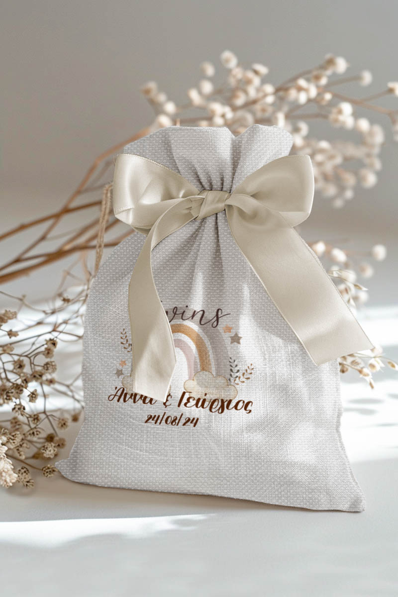 1.59€Μοντέρνες και Πρωτότυπες Μπομπονιέρες Βάπτισης με Πουγκί από Καμβά | Σετ Πουγκί, Εσωτερικό Τούλι & Κορδέλα Σατέν | Premium ποιότητα