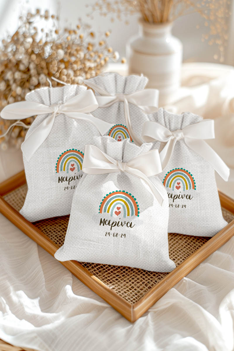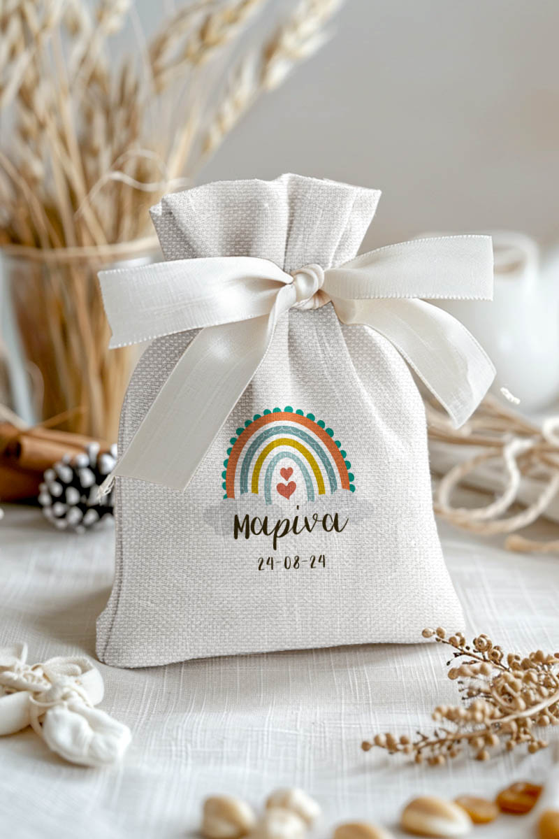 1.59€Μοντέρνες και Πρωτότυπες Μπομπονιέρες Βάπτισης με Πουγκί από Καμβά | Σετ Πουγκί, Εσωτερικό Τούλι & Κορδέλα Σατέν | Premium ποιότητα