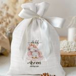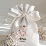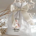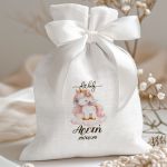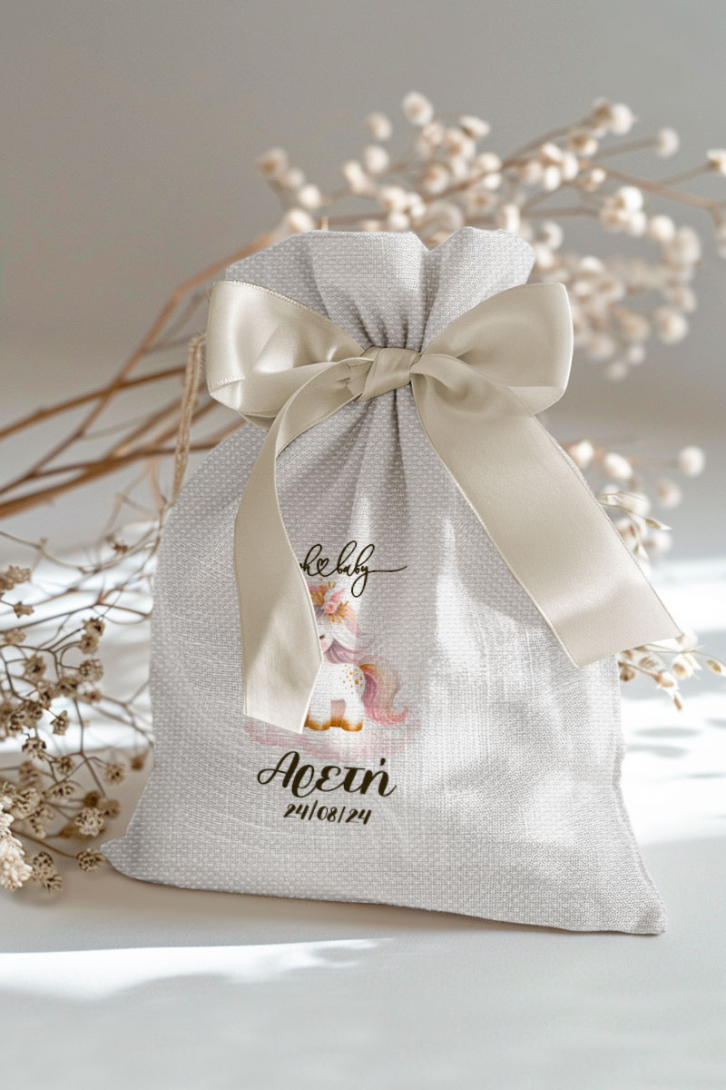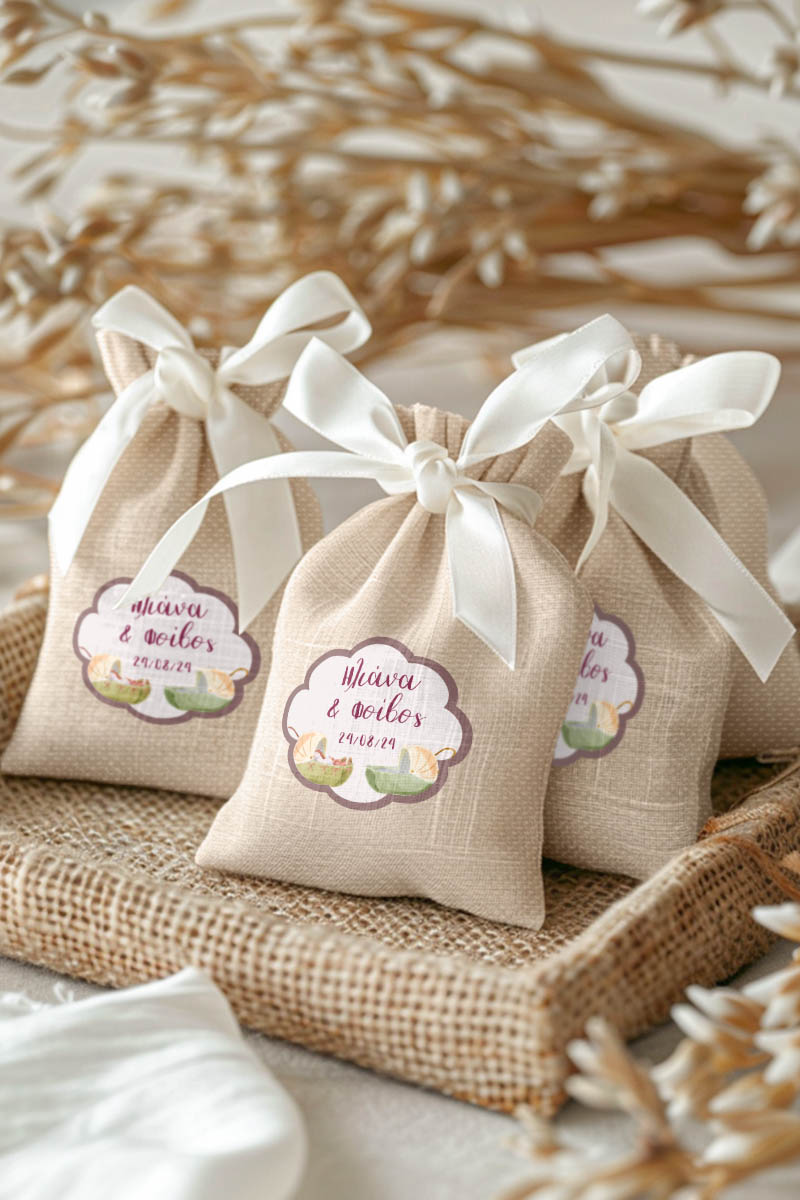 • Κάθε σετ μπομπονιέρας περιλαμβάνει ένα προσωποποιημένο πουγκί από ύφανση καμβά, με δυνατότητα επιλογής χρώματος και σχεδίου.