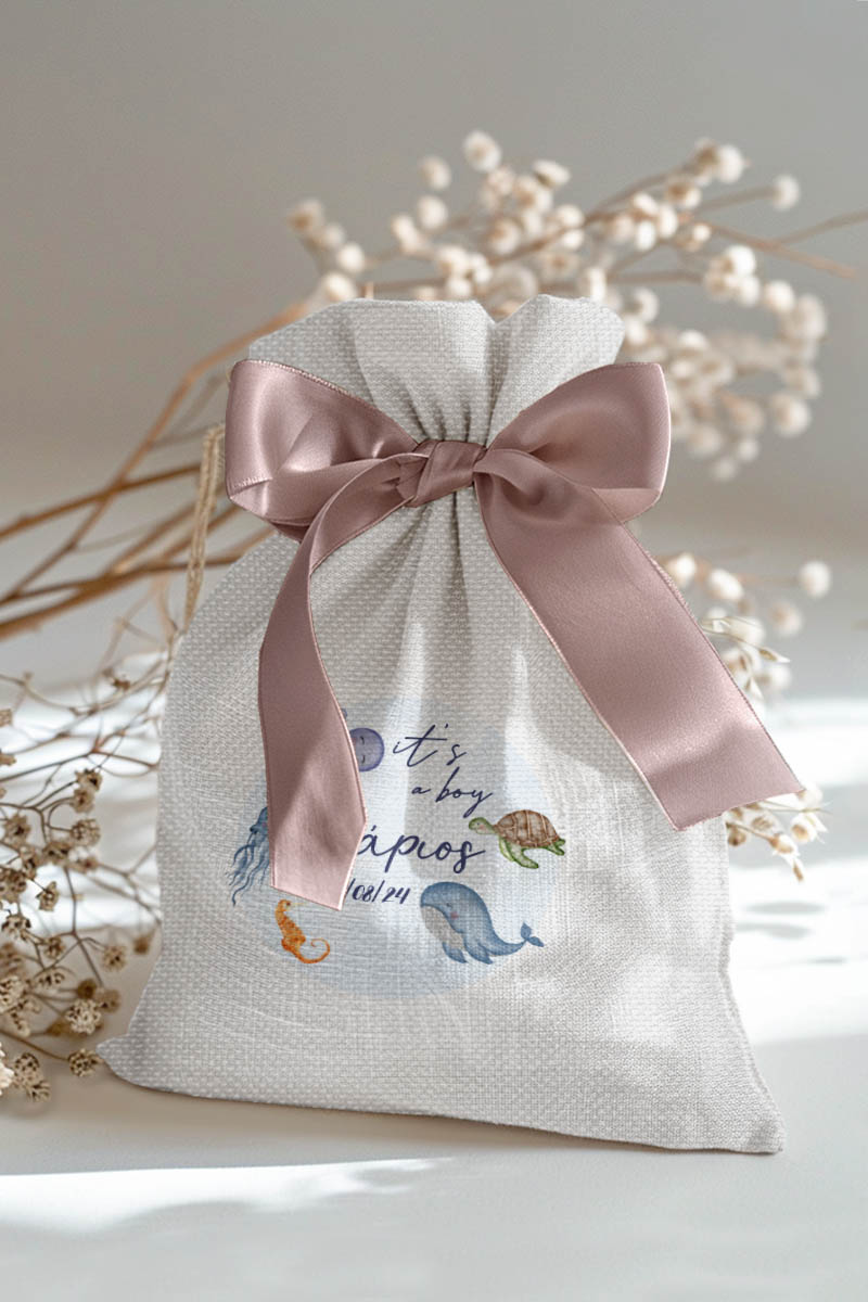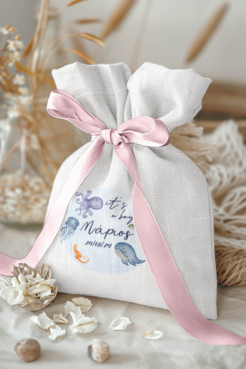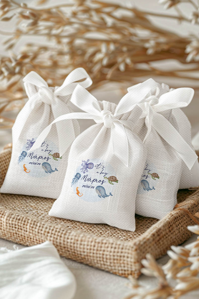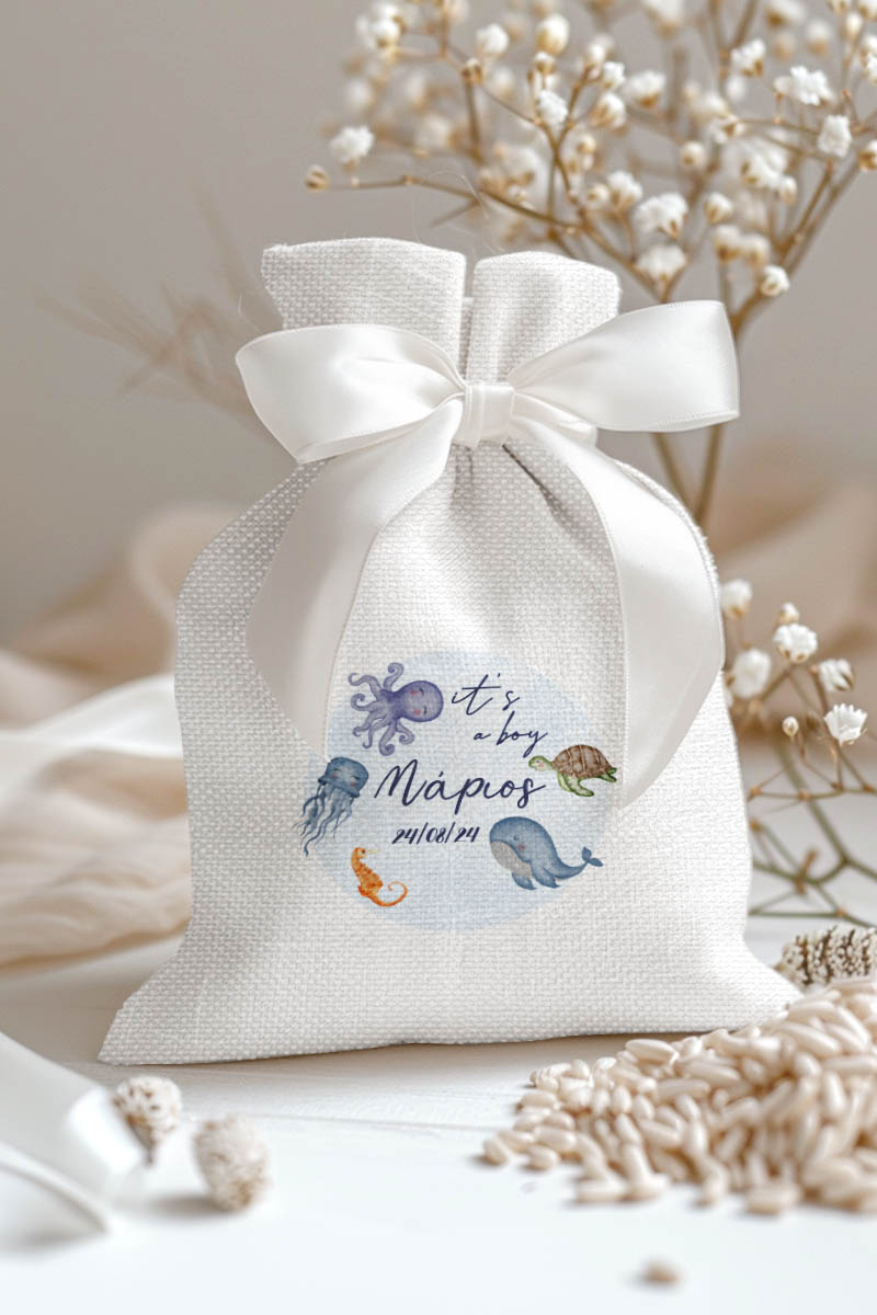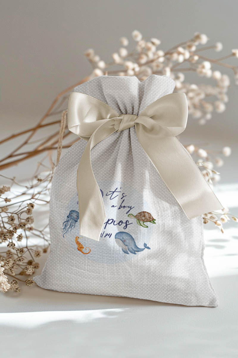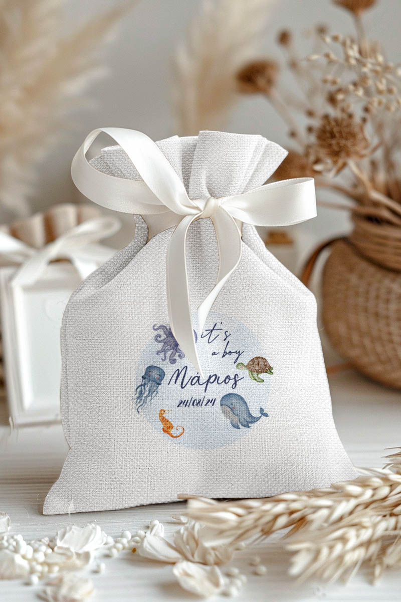 1.59€Μοντέρνες και Πρωτότυπες Μπομπονιέρες Βάπτισης με Πουγκί από Καμβά | Σετ Πουγκί, Εσωτερικό Τούλι & Κορδέλα Σατέν | Premium ποιότητα