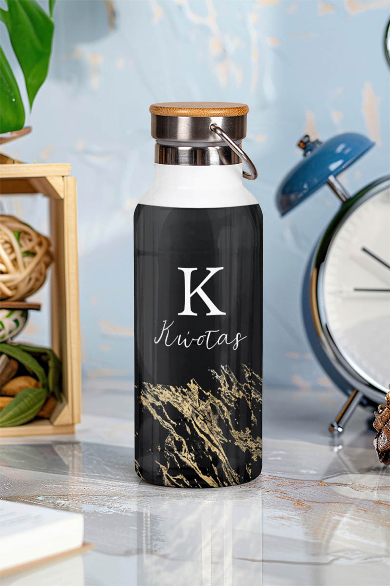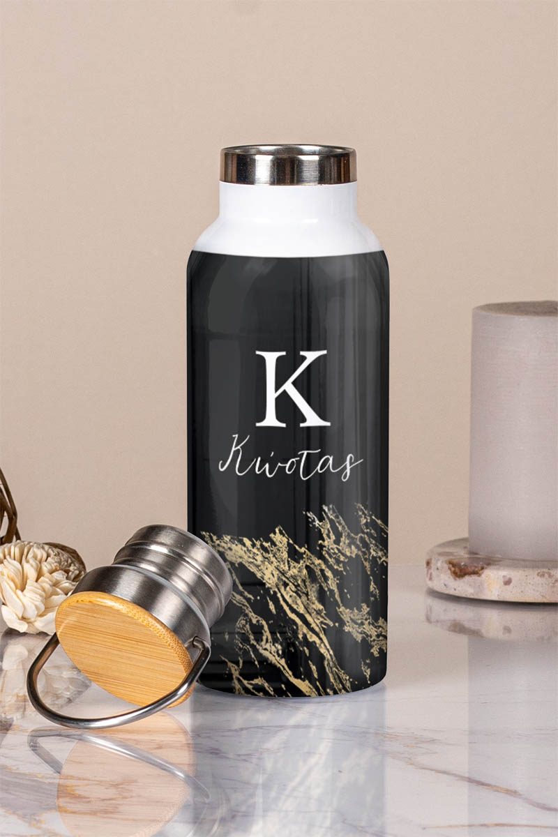 Μπουκάλι Θερμός, Ανοξείδωτo με Προσωποποίηση, Black Gold