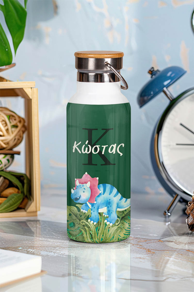 Μπουκάλι Θερμός, Ανοξείδωτo με Προσωποποίηση, Blue Dino