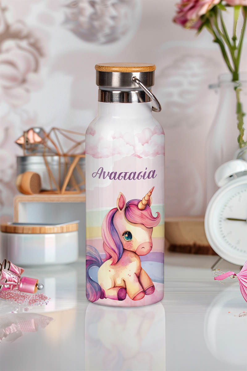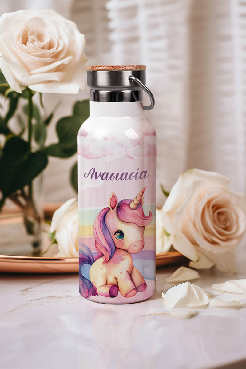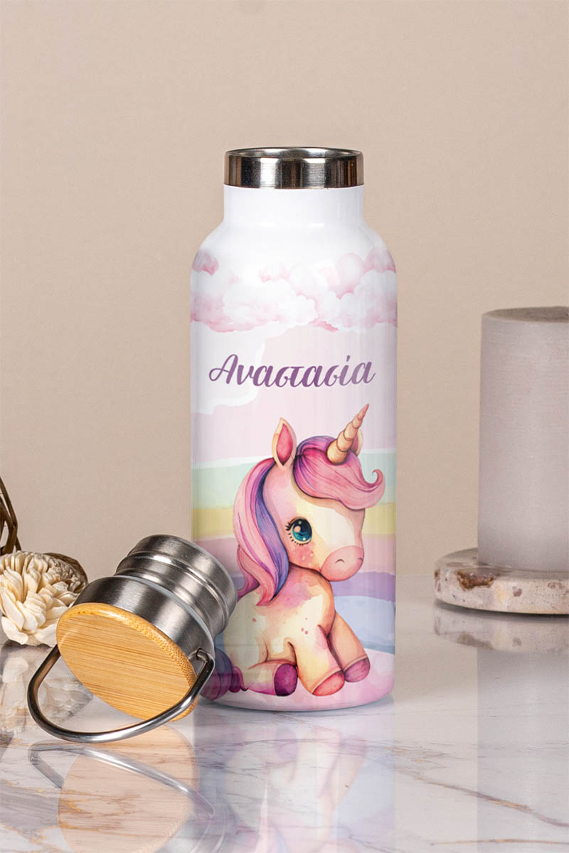Μπουκάλι Θερμός, Ανοξείδωτo με Προσωποποίηση, Cute Unicorn