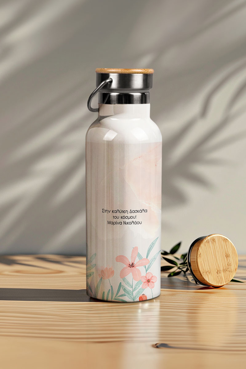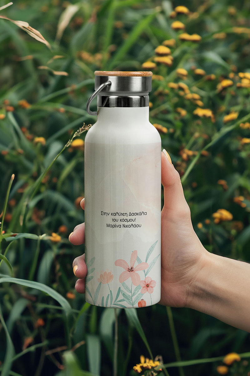 Μπουκάλι Θερμός Ανοξείδωτo με Σχέδιο Floral Teacher