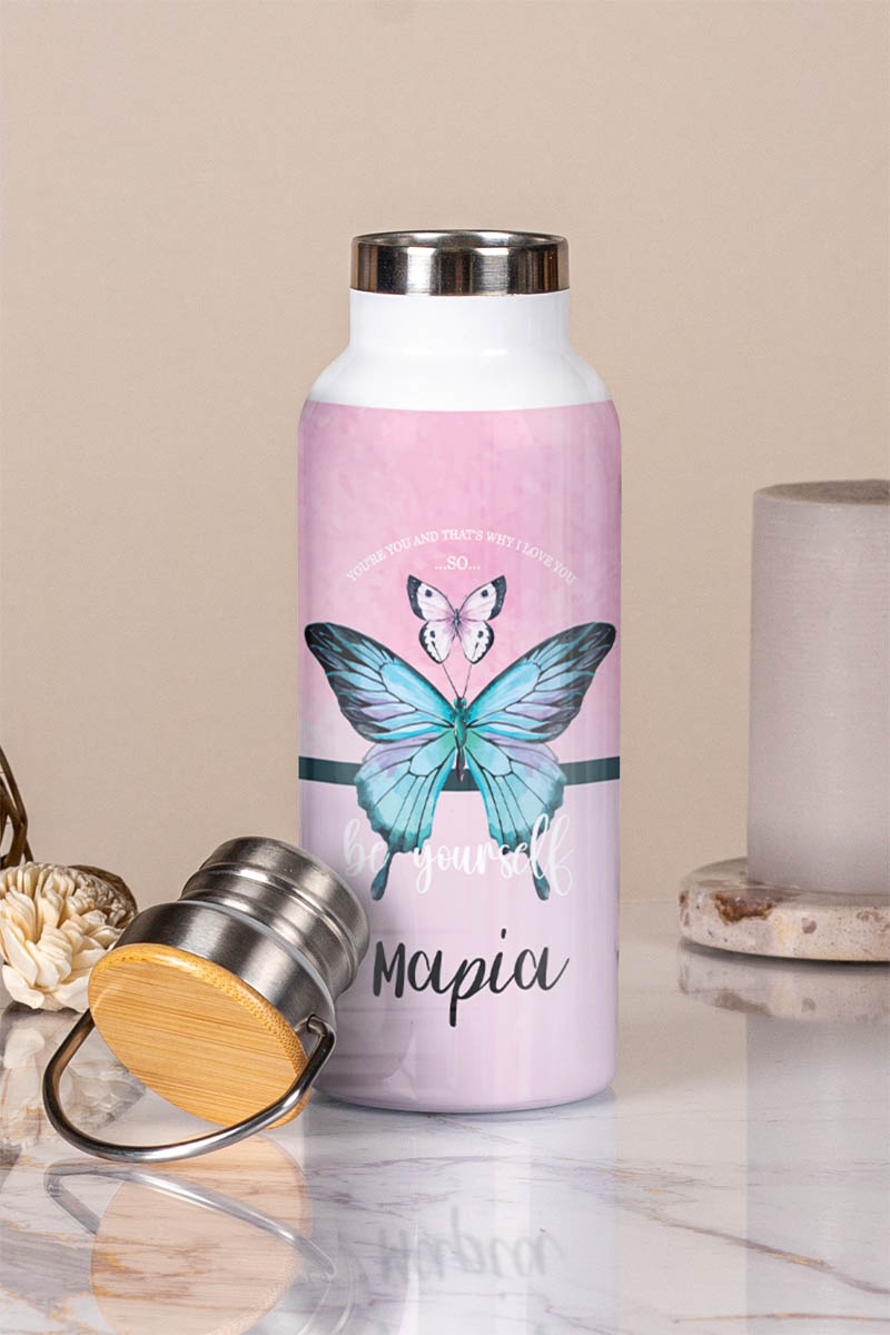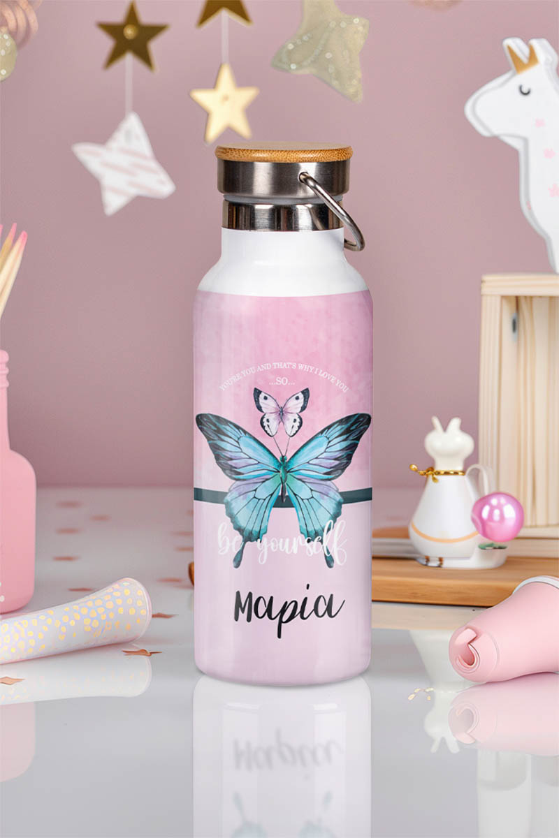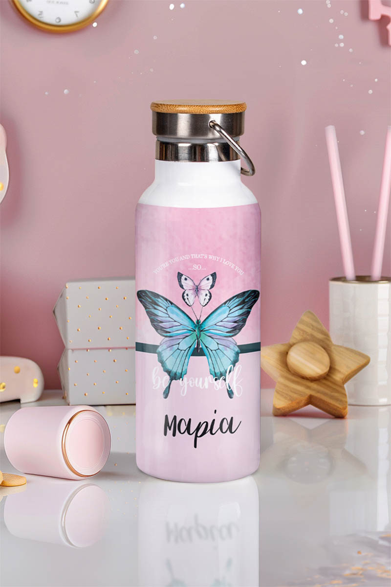 Μπουκάλι Θερμός, Ανοξείδωτo με Προσωποποίηση, Butterflies