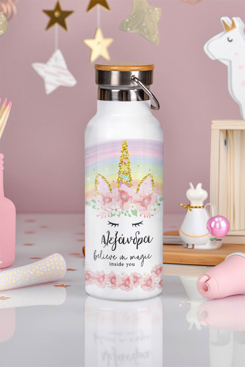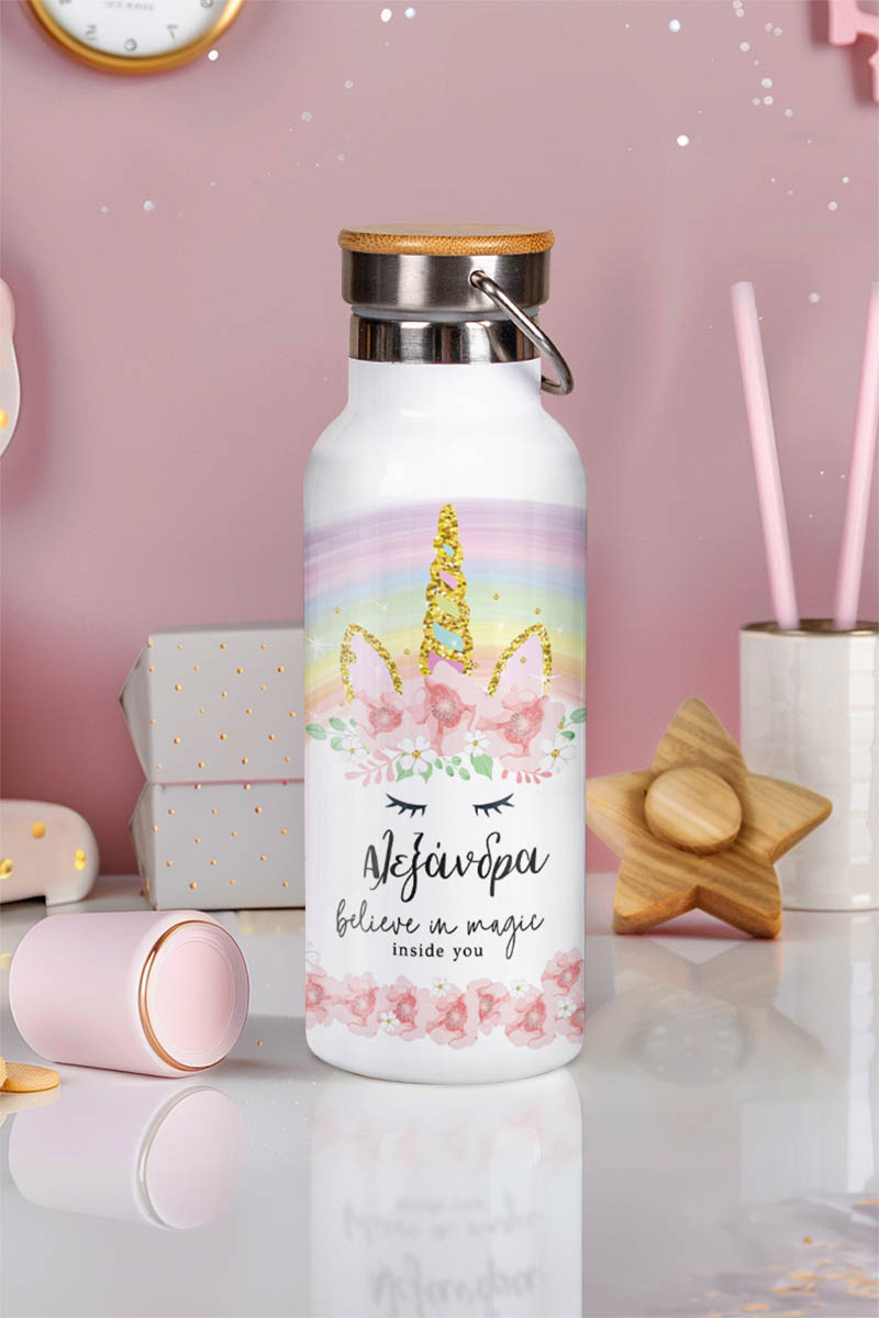 Μπουκάλι Θερμός, Ανοξείδωτo με Προσωποποίηση, Gold Unicorn