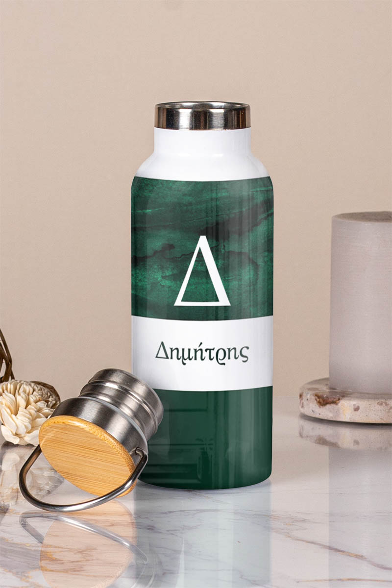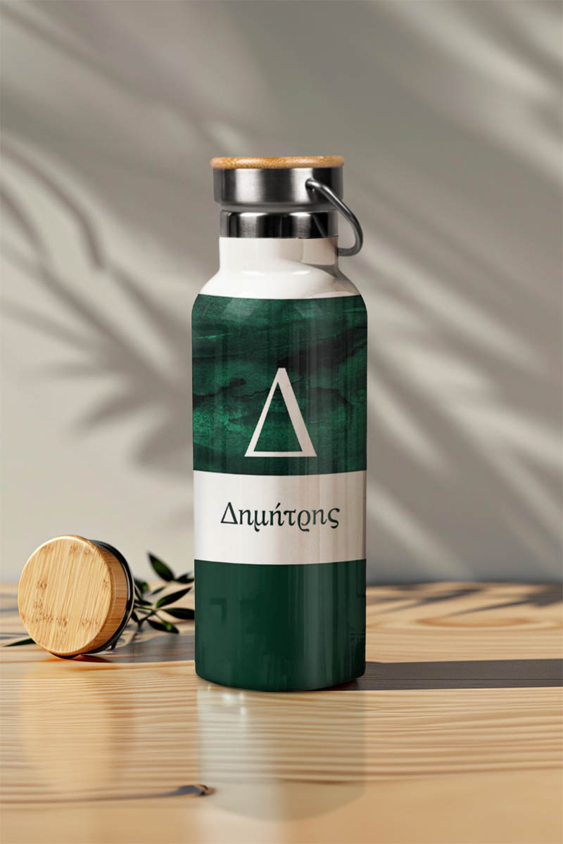 Μπουκάλι Θερμός, Ανοξείδωτo με Προσωποποίηση, Green Motif