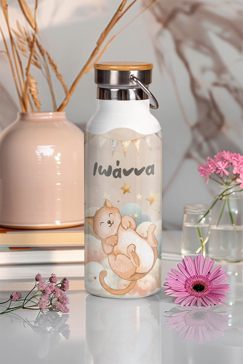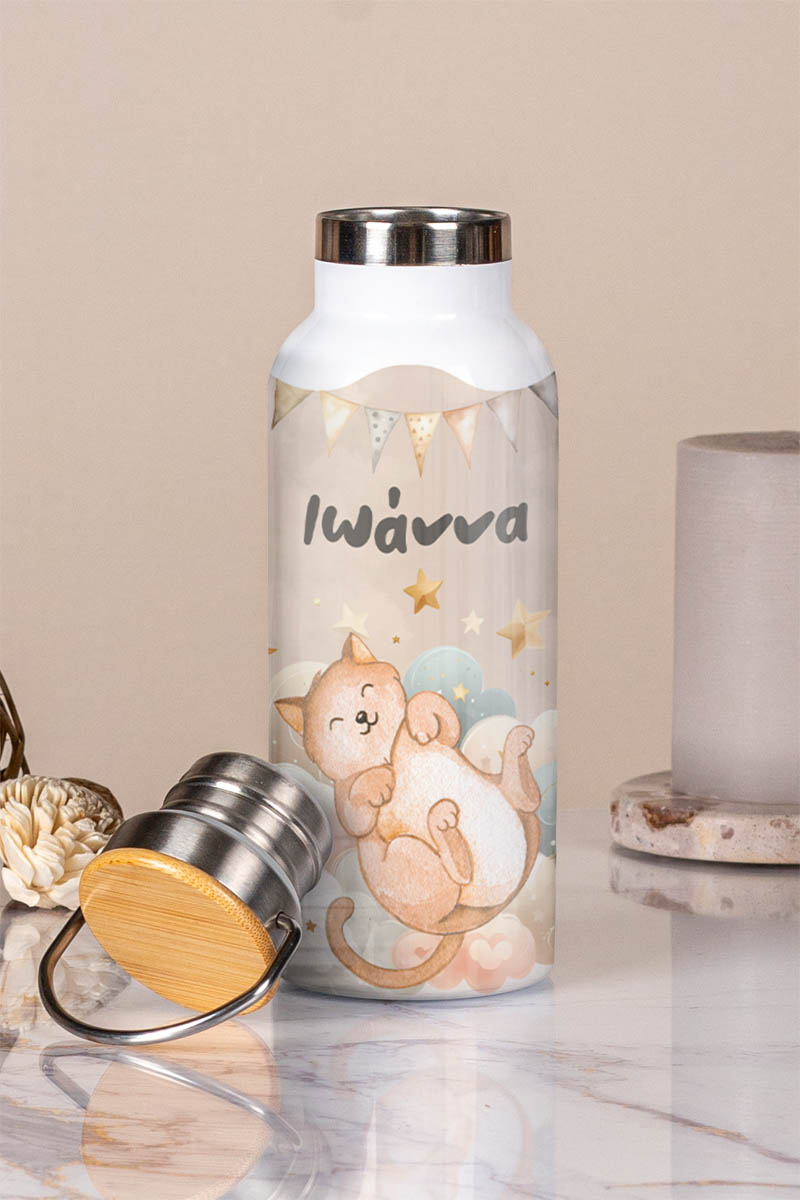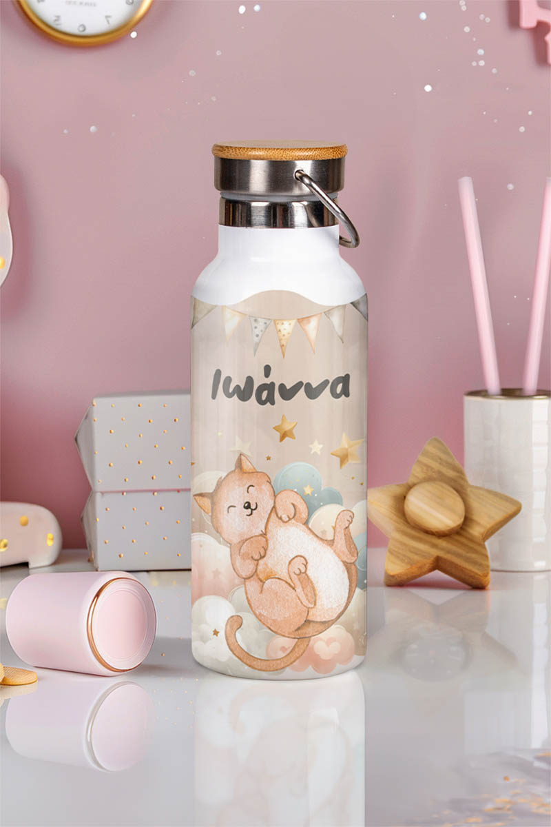 Μπουκάλι Θερμός, Ανοξείδωτo με Προσωποποίηση, Happy Cat