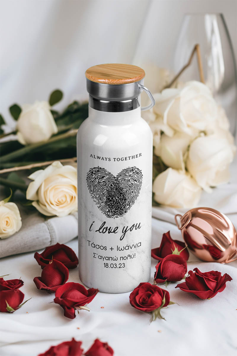 Μπουκάλι Θερμός Ανοξείδωτo με Σχέδιο Heart Fingerprint