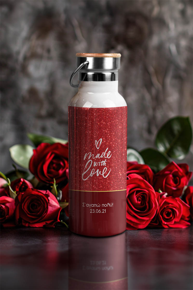 Μπουκάλι Θερμός Ανοξείδωτo με Σχέδιο Made With Love