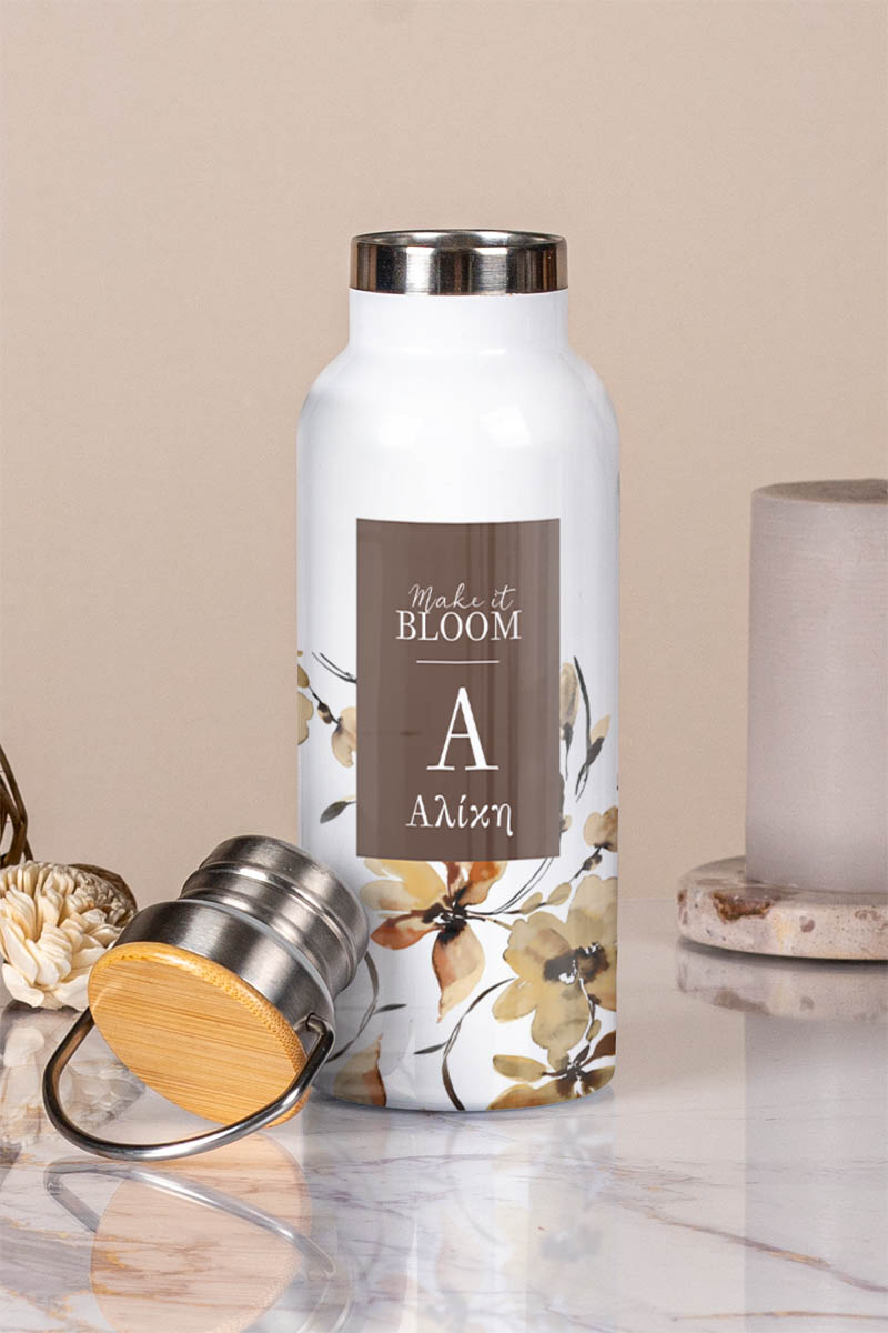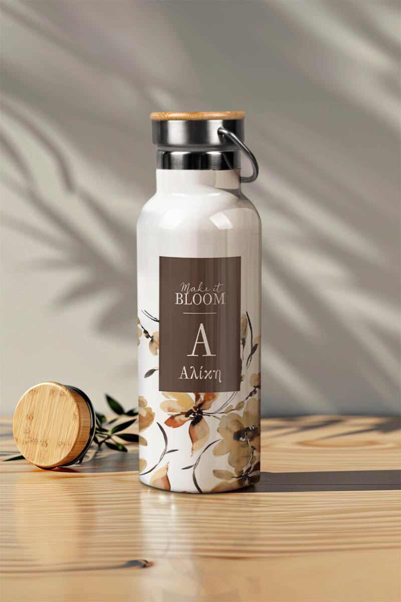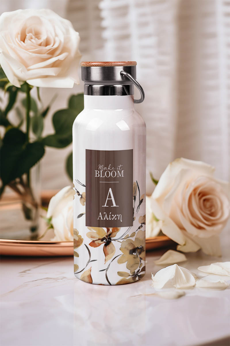 Μπουκάλι Θερμός, Ανοξείδωτo με Προσωποποίηση, Make It Bloom