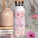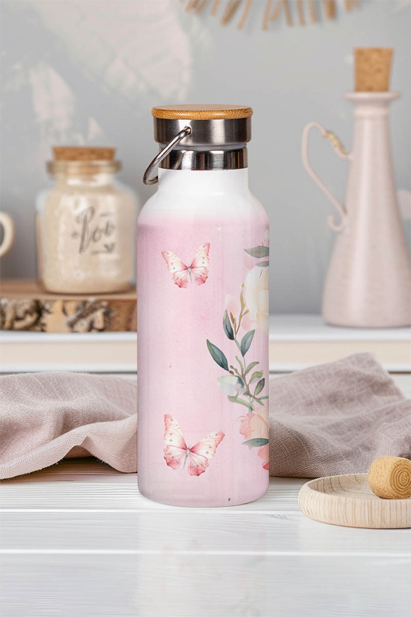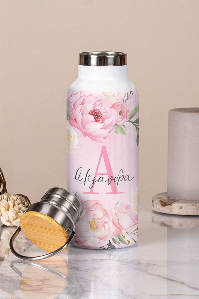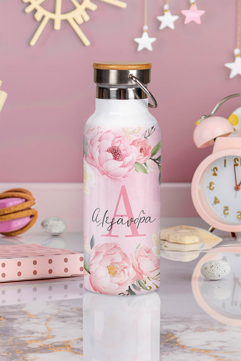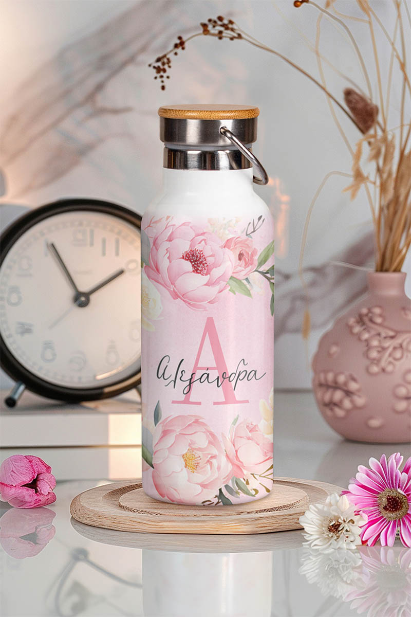 Μπουκάλι Θερμός, Ανοξείδωτo με Προσωποποίηση, Pink Flowers