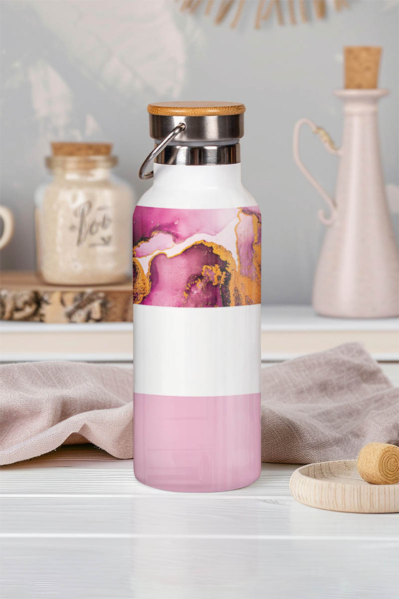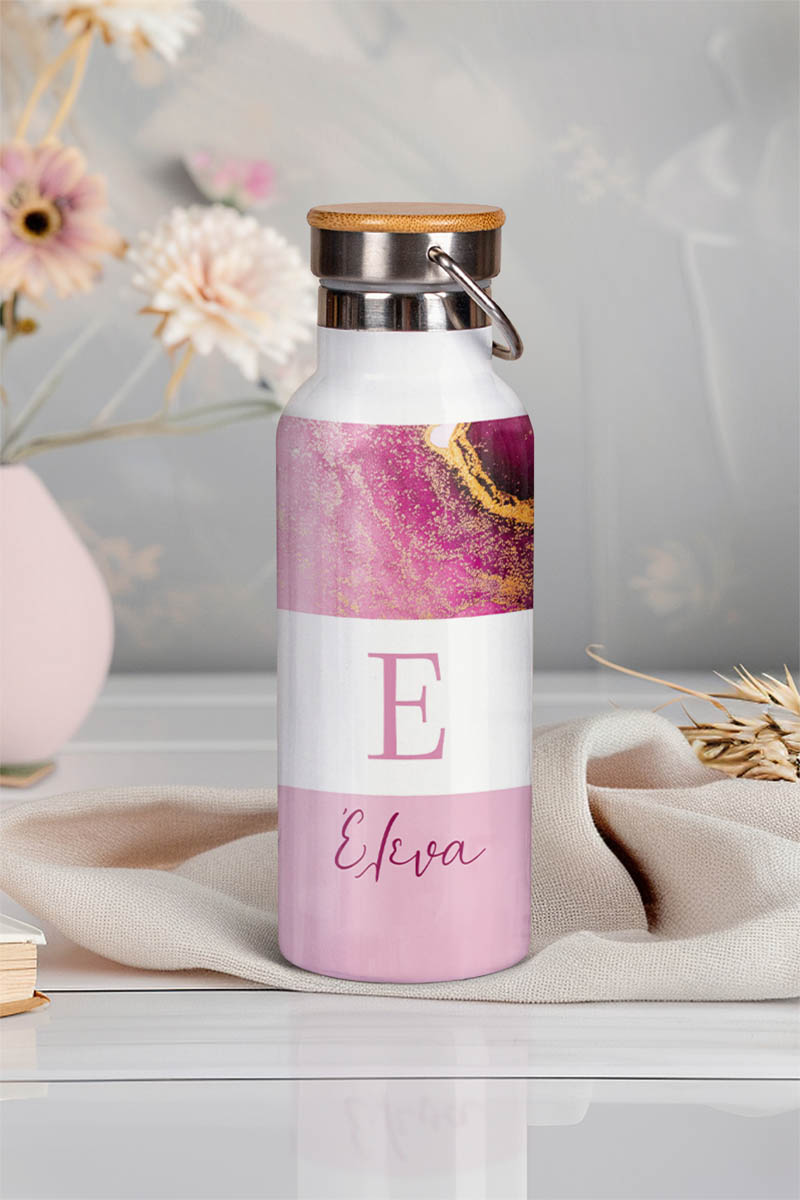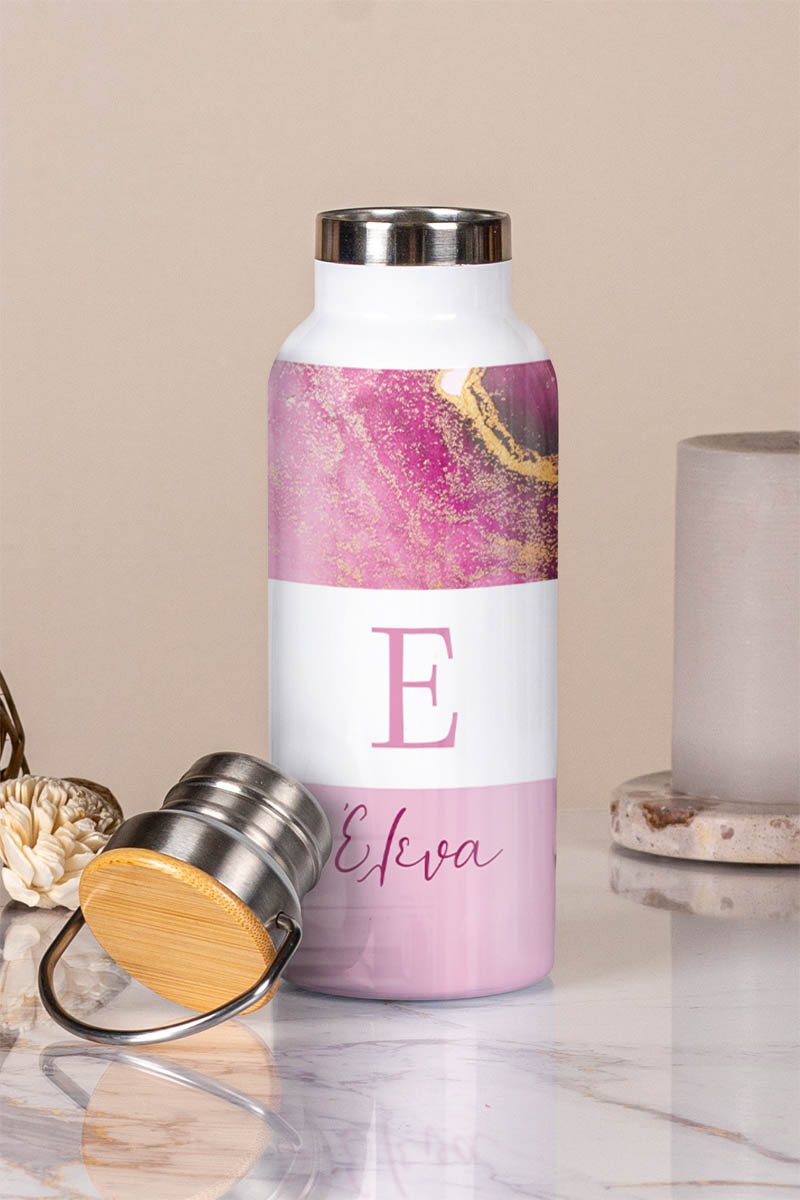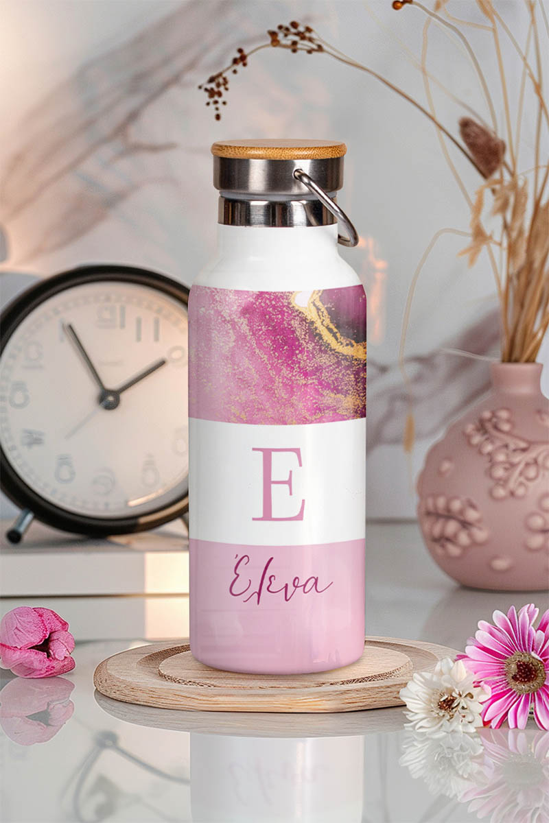 Μπουκάλι Θερμός, Ανοξείδωτo με Προσωποποίηση, Pink Pattern