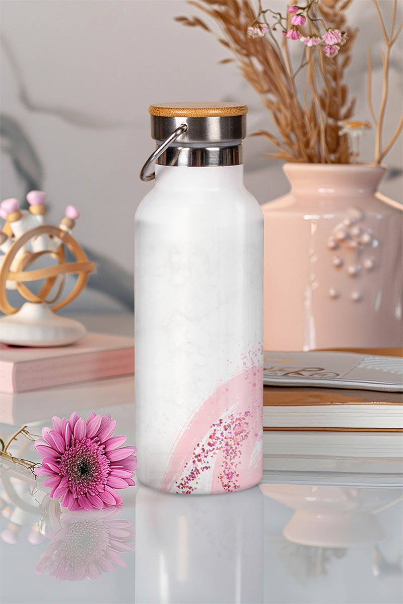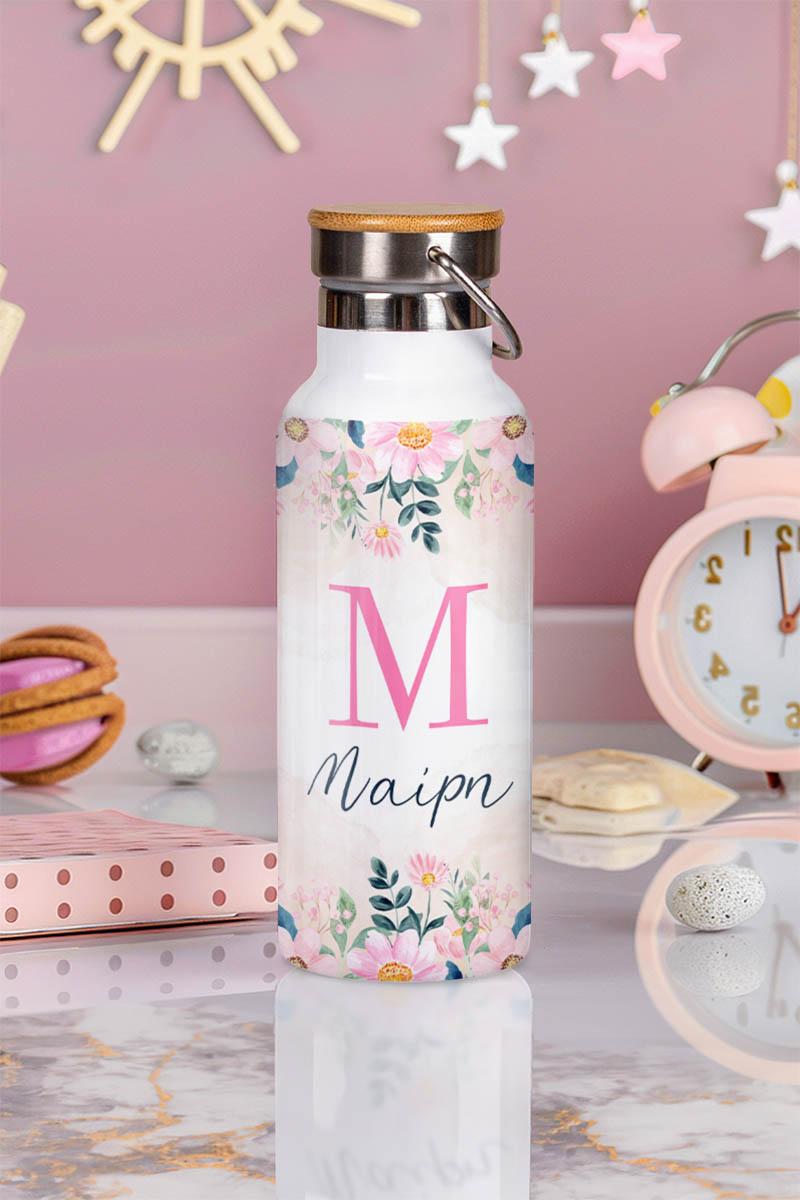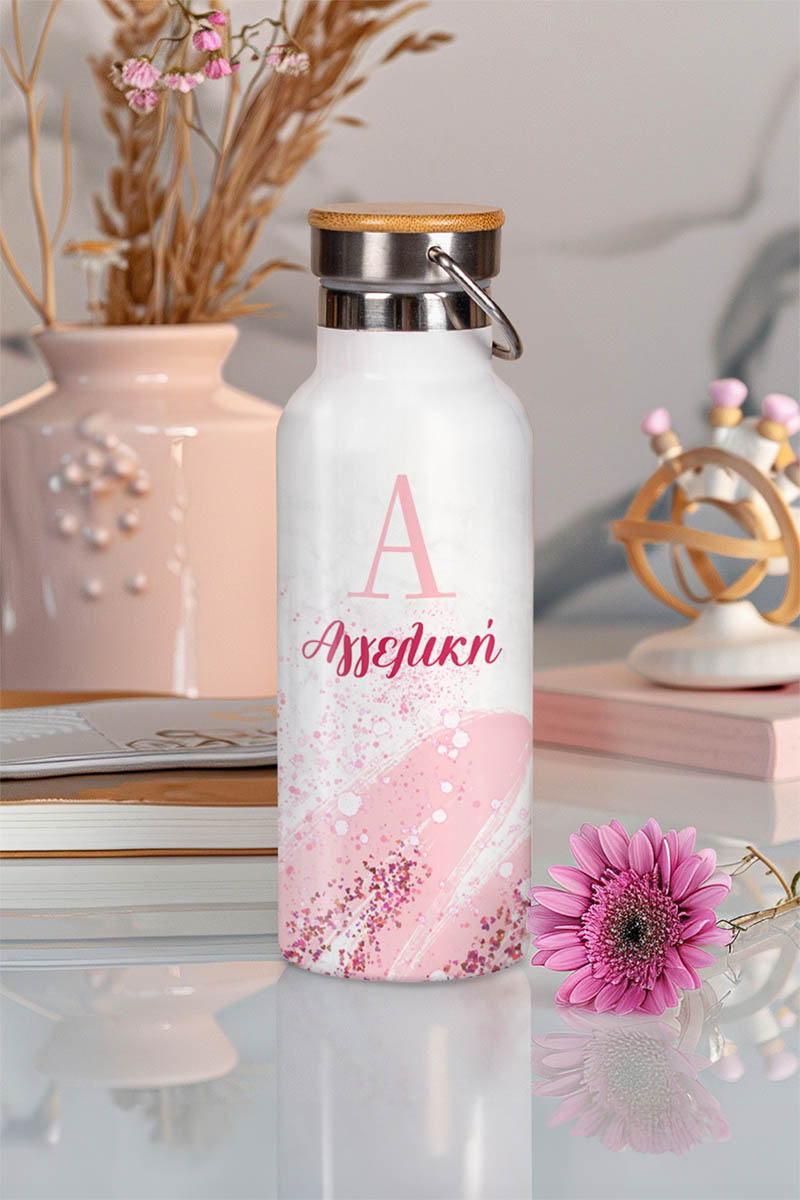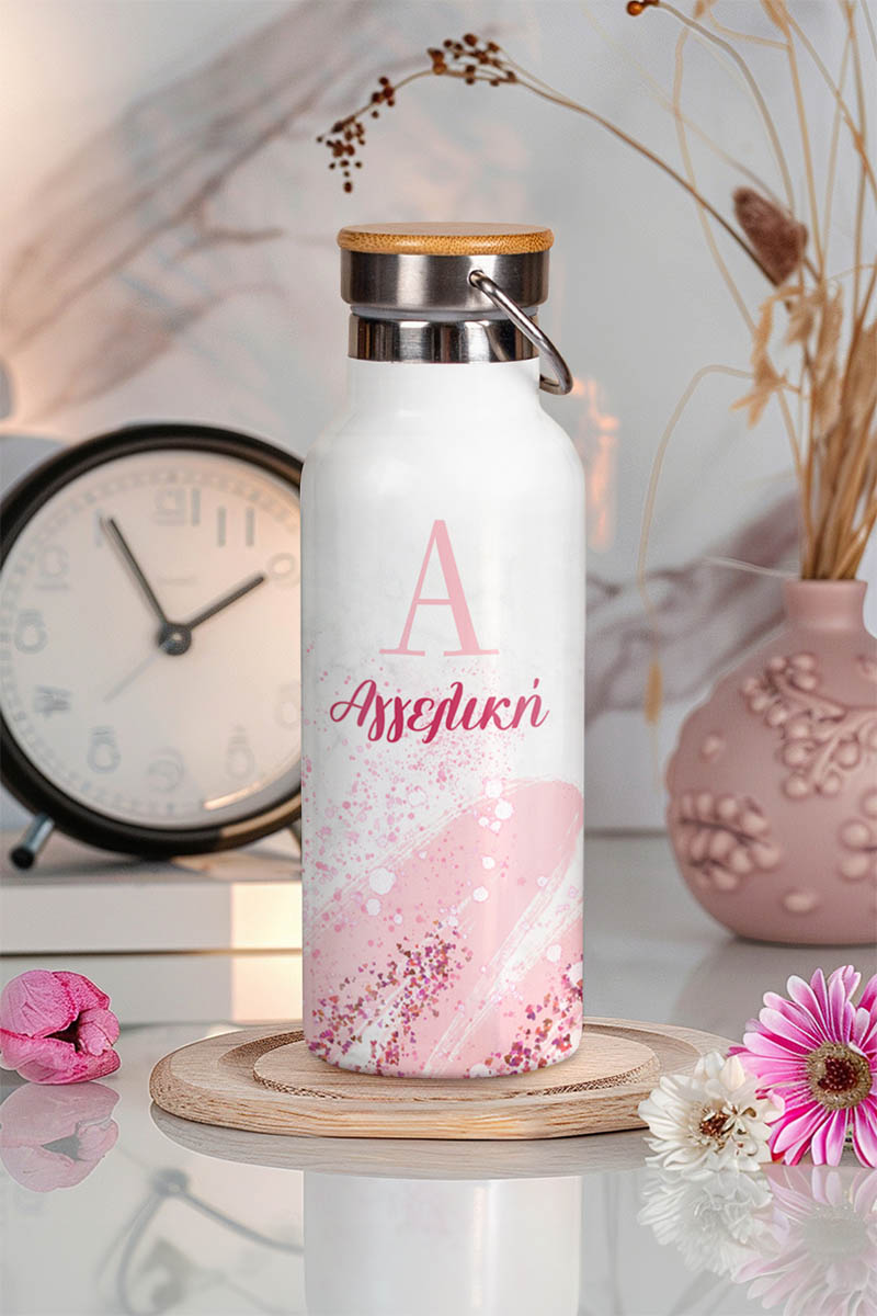 Μπουκάλι Θερμός, Ανοξείδωτo με Προσωποποίηση, Pink Pattern