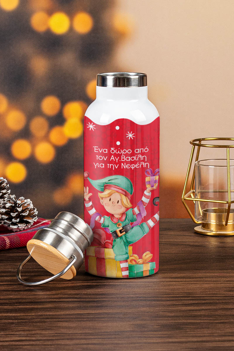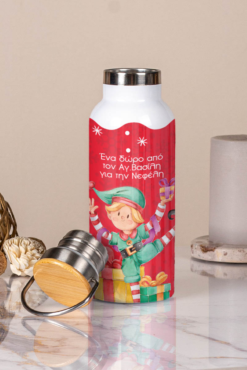 Μπουκάλι Θερμός, Ανοξείδωτo με Προσωποποίηση, Santa Joy