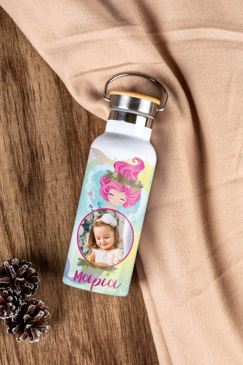 Μπουκάλι Θερμός, Ανοξείδωτo με Προσωποποίηση,Xmas Mermaid