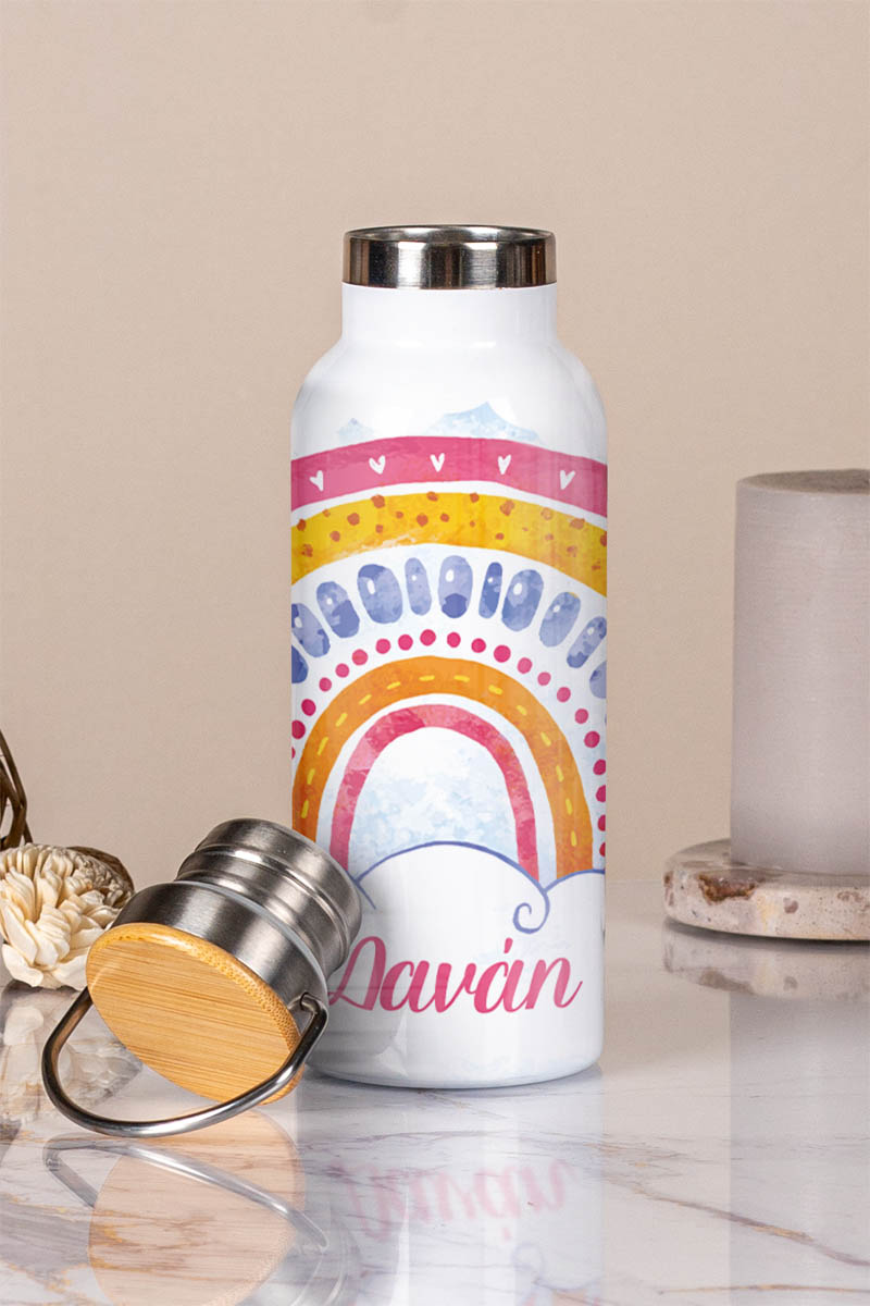 Μπουκάλι Θερμός, Ανοξείδωτo με Προσωποποίηση, Rainbow Color