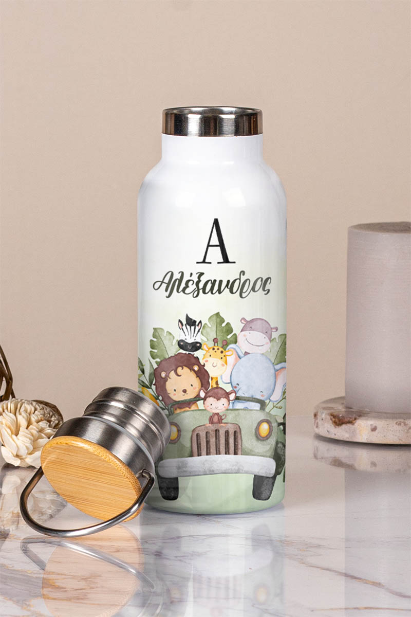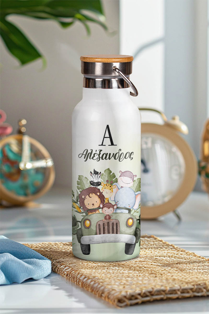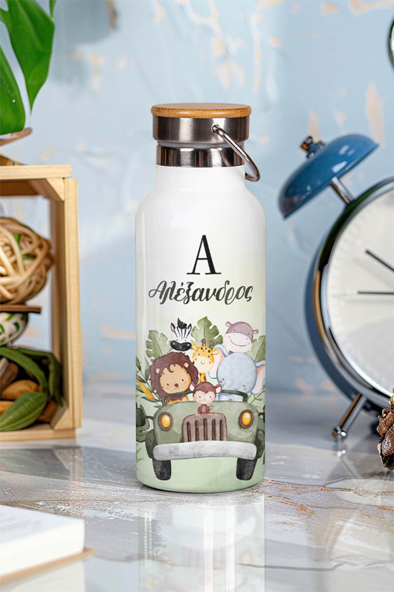 Μπουκάλι Θερμός, Ανοξείδωτo με Προσωποποίηση, Safari