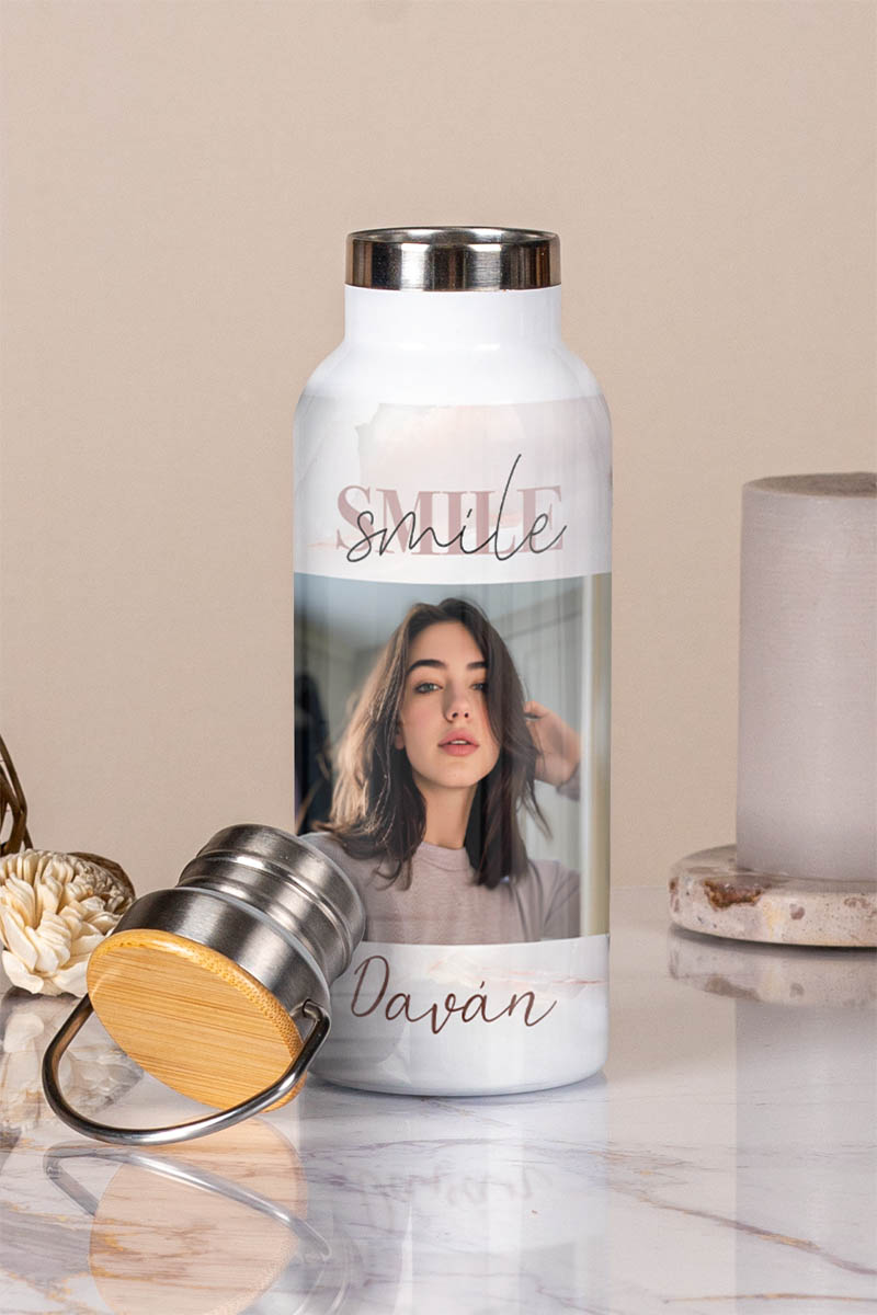 Μπουκάλι Θερμός, Ανοξείδωτo με Προσωποποίηση, Smile On