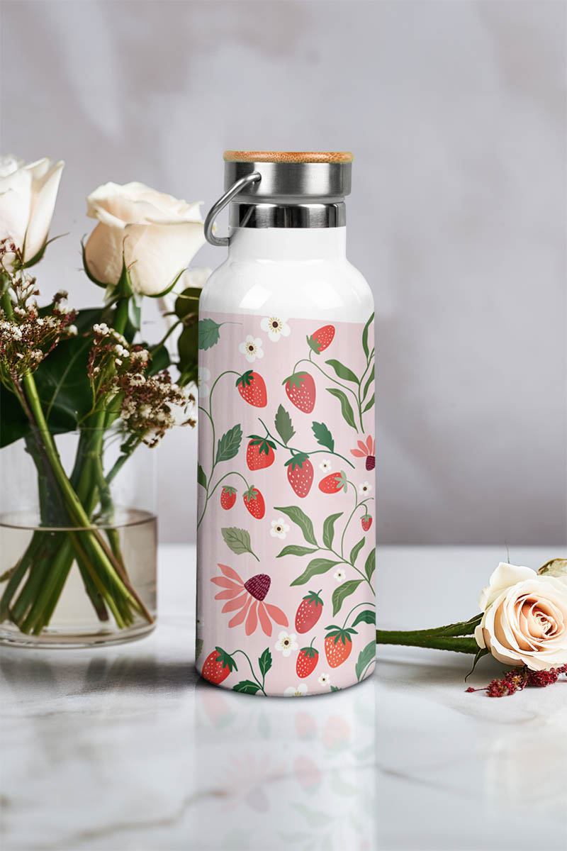 Μπουκάλι Θερμός Ανοξείδωτo με Σχέδιο Around Strawberries