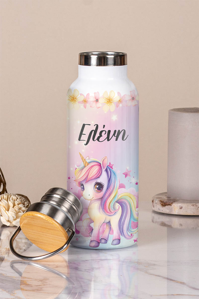 Μπουκάλι Θερμός, Ανοξείδωτo με Προσωποποίηση, Sunny Unicorn
