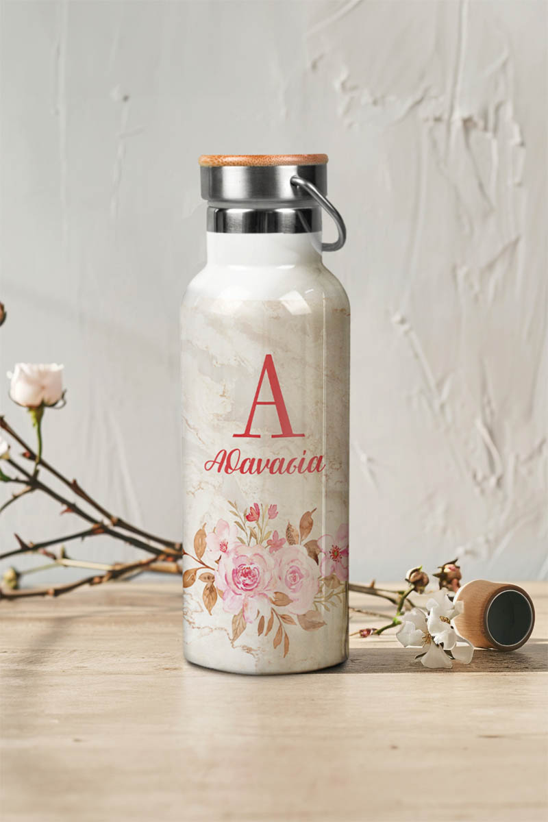 Μπουκάλι Θερμός, Ανοξείδωτo με Προσωποποίηση, Wild Roses