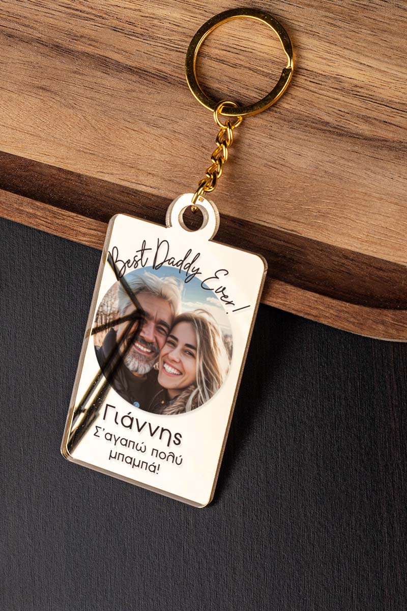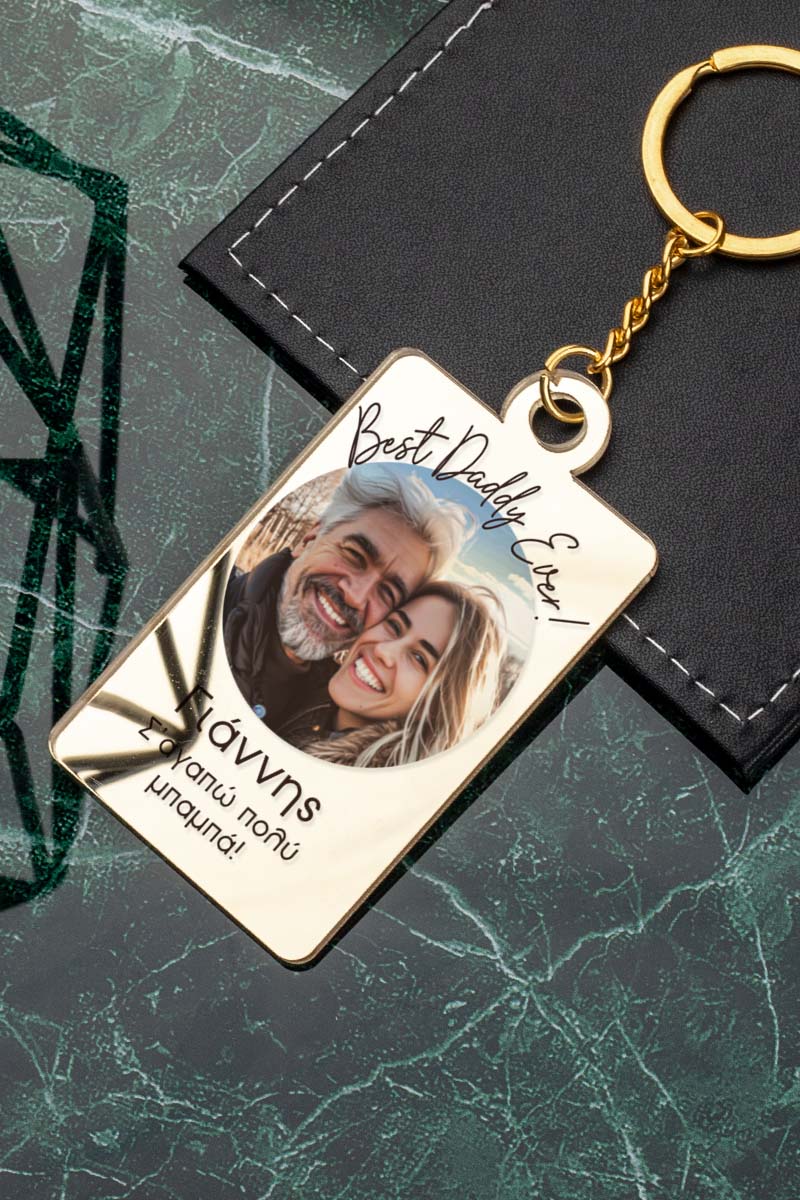 Προσωποποιημένο μπρελόκ, με φωτογραφία, ονόματα και αφιέρωση. Μοναδικό δώρο αγάπης για τη γιορτή του πατέρα!
