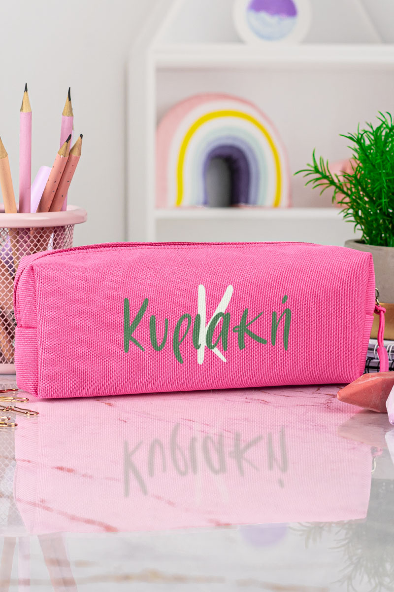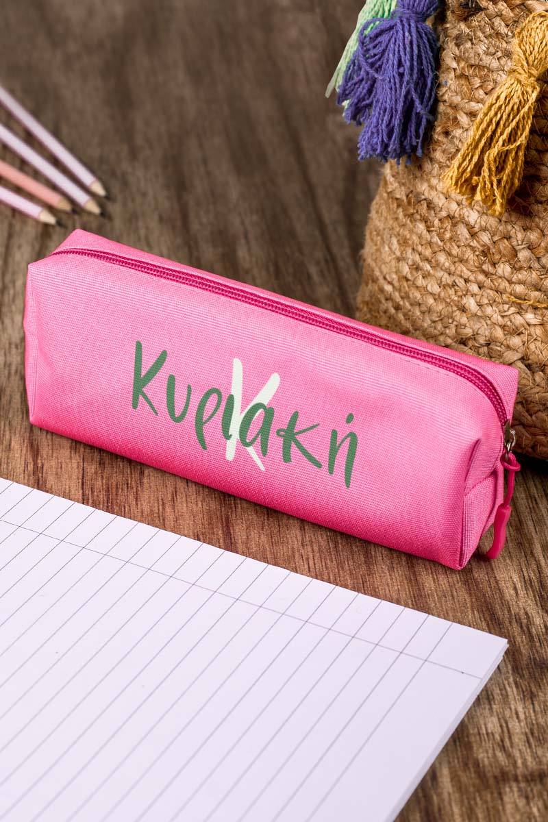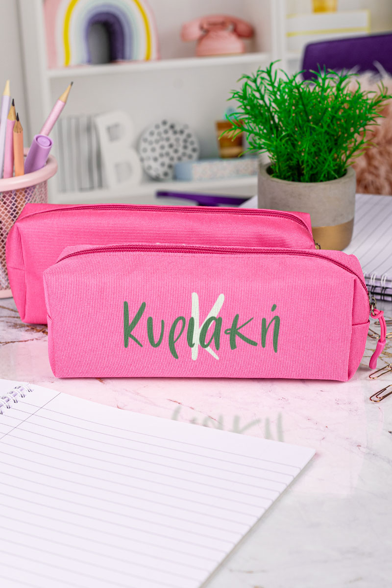 Σχολική Κασετίνα με Όνομα, σε Φούξια Χρώμα & Σχέδιο My Monogram