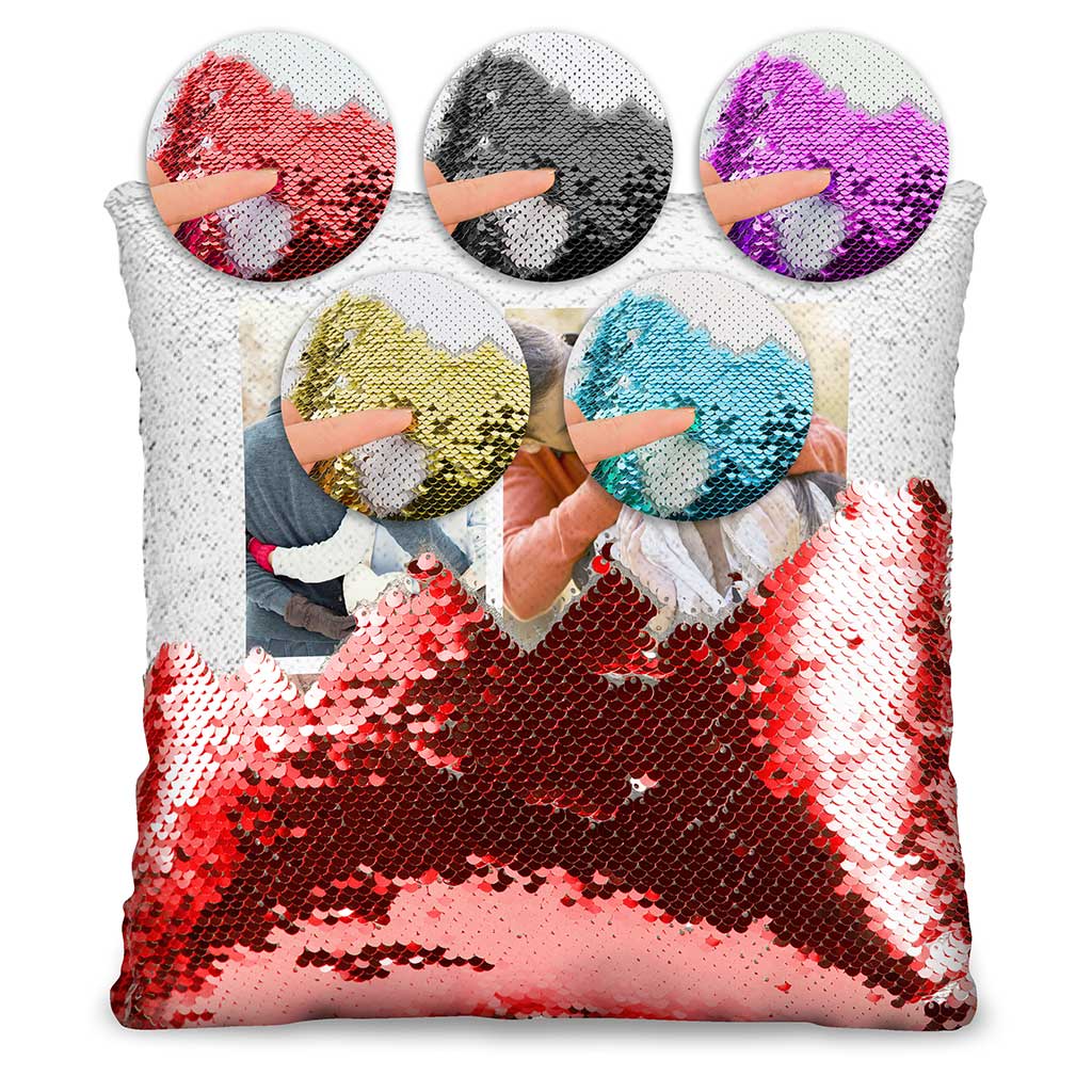 Τα μαγικά μαξιλάρια αποτελούνται από δίχρωμες παγιέτες που όταν ανασηκωθούν εμφανίζουν τις φωτογραφίες σας!
