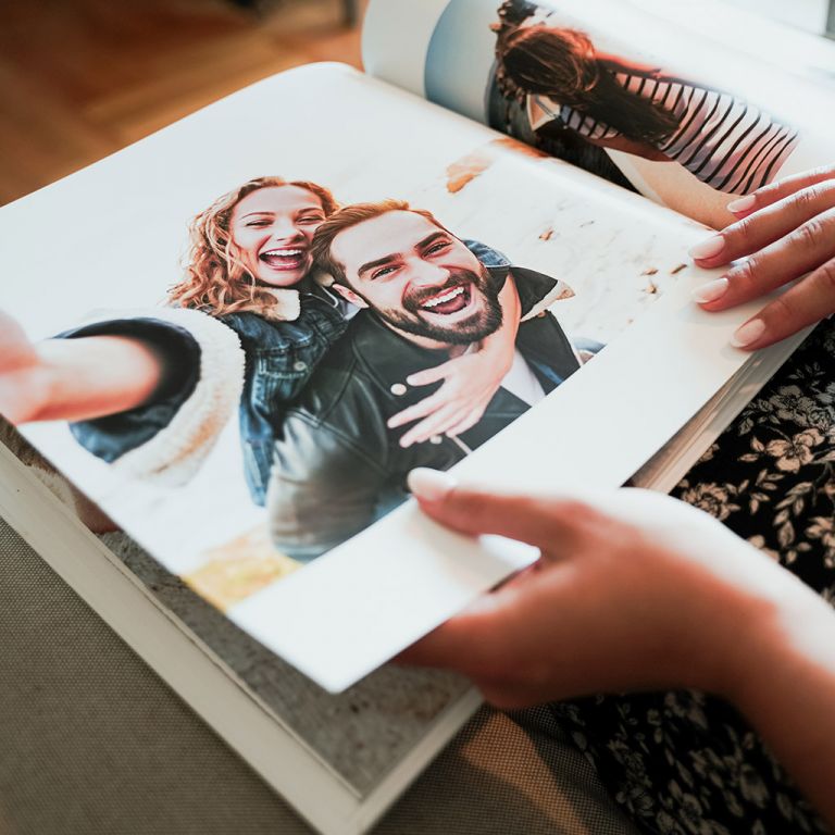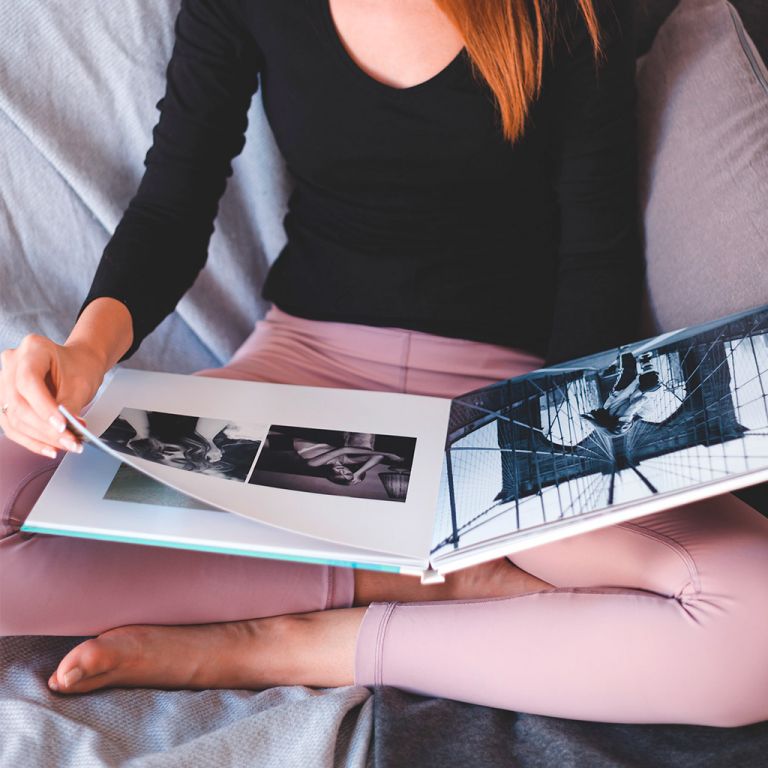 Επιλέξτε μια από τις δύο τεχνολογίες εκτύπωσης και βιβλιοδεσίας. Το photobook HD, εκτυπωμένο σε τυπογραφικό χαρτί illustration 220 γραμμαρίων με ποιότητα εκτύπωσης myikona High Definition και κλασική βιβλιοδεσία ή το Layflat Photo book, εκτυπωμένο σε φωτογραφικό χαρτί με χοντρές σελίδες 450 γραμμαρίων και βιβλιοδεσία που επιτρέπει το επίπεδο και ενιαίο άνοιγμα των σελίδων χωρίς να χάνεται θέμα στη μέση των σελίδων.