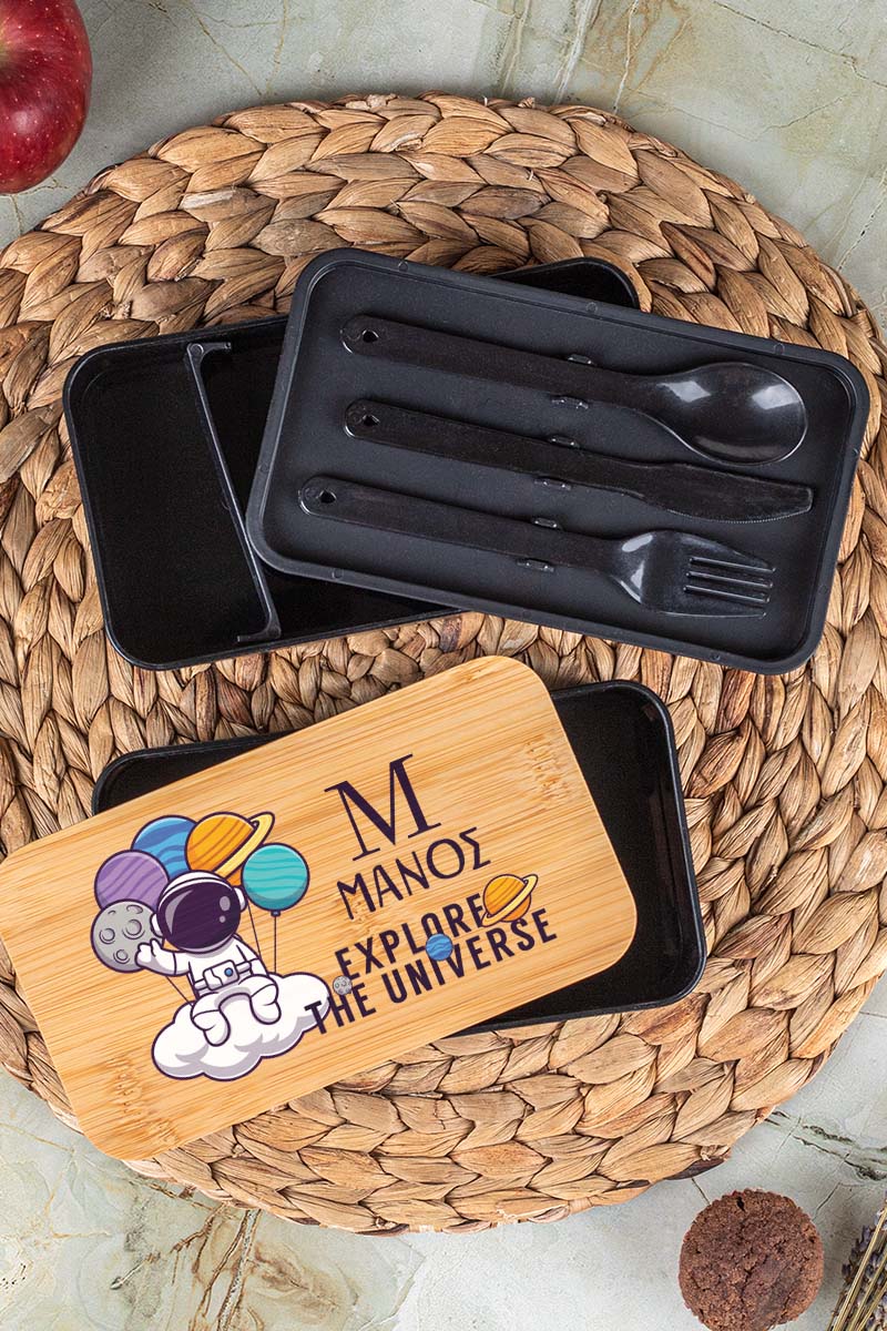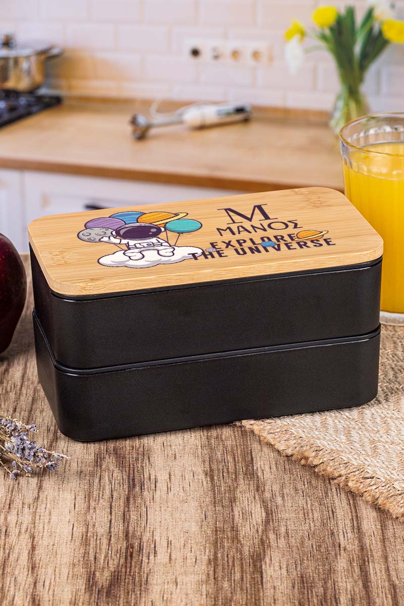 Παιδικό δοχείο φαγητού υψηλής ποιότητας, με 2 επιπέδα & εκτυπωμένο το όνομα του παιδιού ώστε να το ξεχωρίζει στο σχολείο!