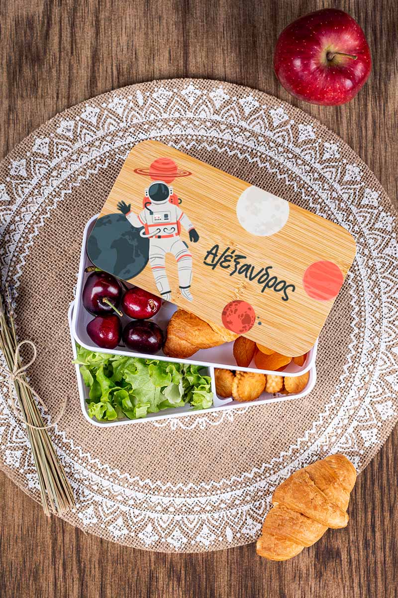 Παιδικό δοχείο φαγητού υψηλής ποιότητας, με 2 επιπέδα & εκτυπωμένο το όνομα του παιδιού ώστε να το ξεχωρίζει στο σχολείο!