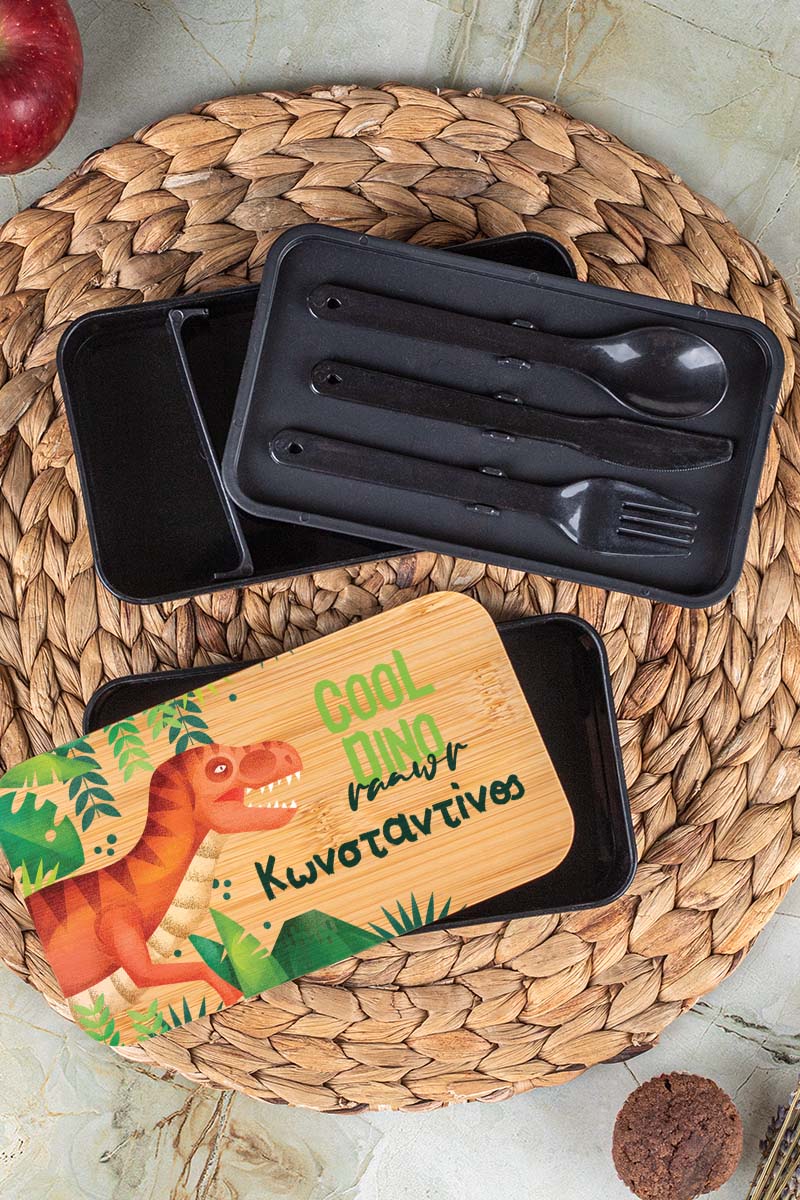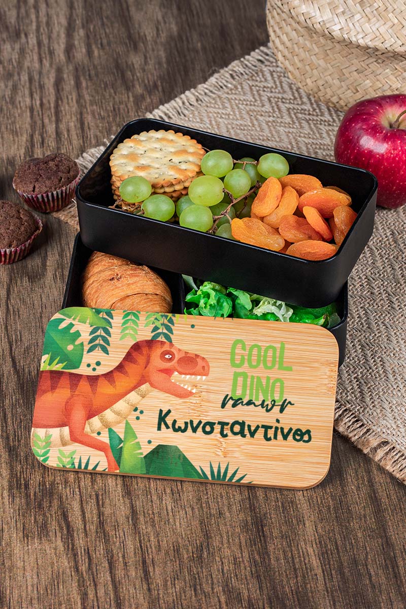 Δοχείου Φαγητού 2 Επιπέδων, με το Όνομα του Παιδιού, Dino Roar