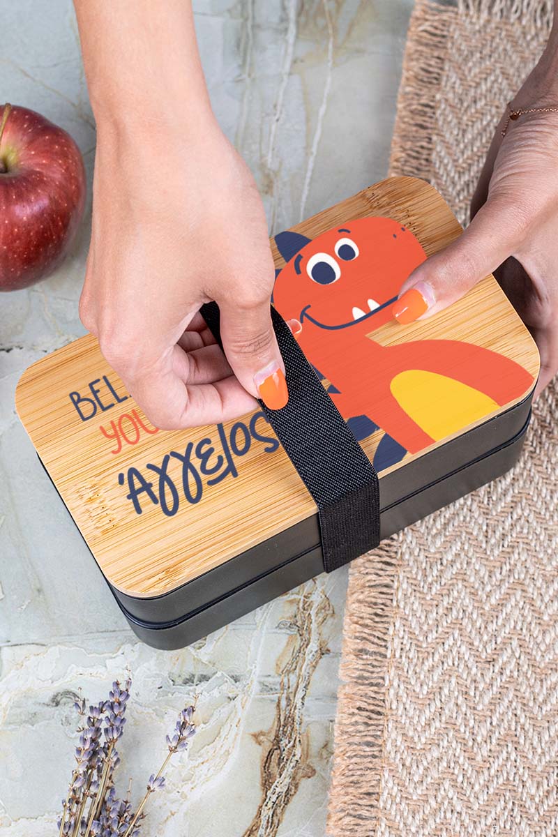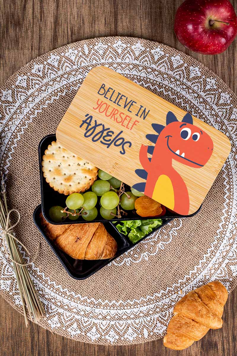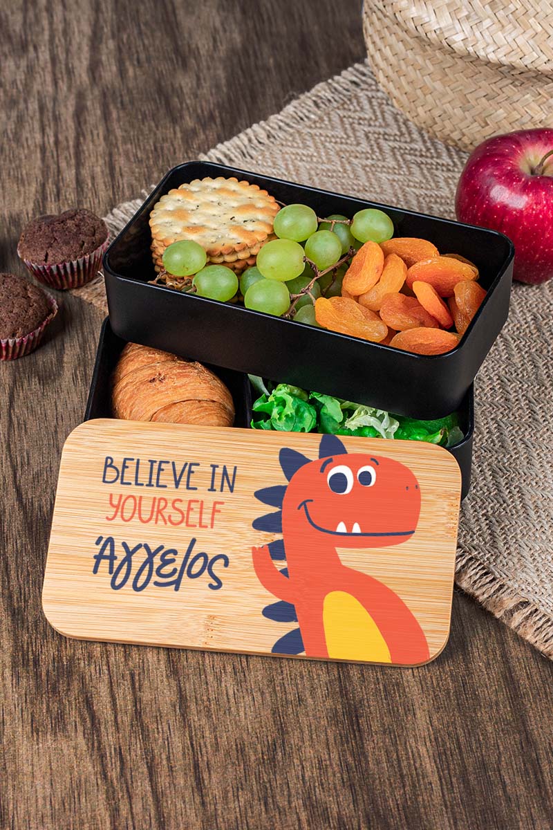 Δοχείου Φαγητού 2 Επιπέδων, με το Όνομα του Παιδιού, Good Dino