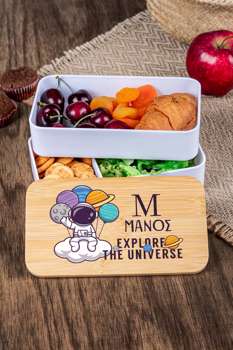 Παιδικό δοχείο φαγητού υψηλής ποιότητας, με 2 επιπέδα & εκτυπωμένο το όνομα του παιδιού ώστε να το ξεχωρίζει στο σχολείο!