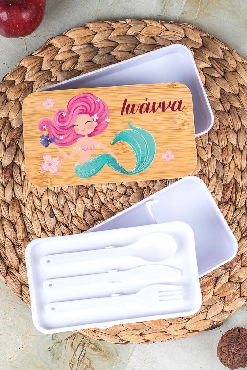 Δοχείου Φαγητού 2 Επιπέδων, με το Όνομα του Παιδιού, Joyful Mermaid