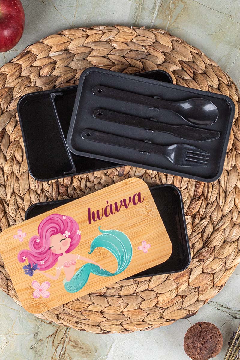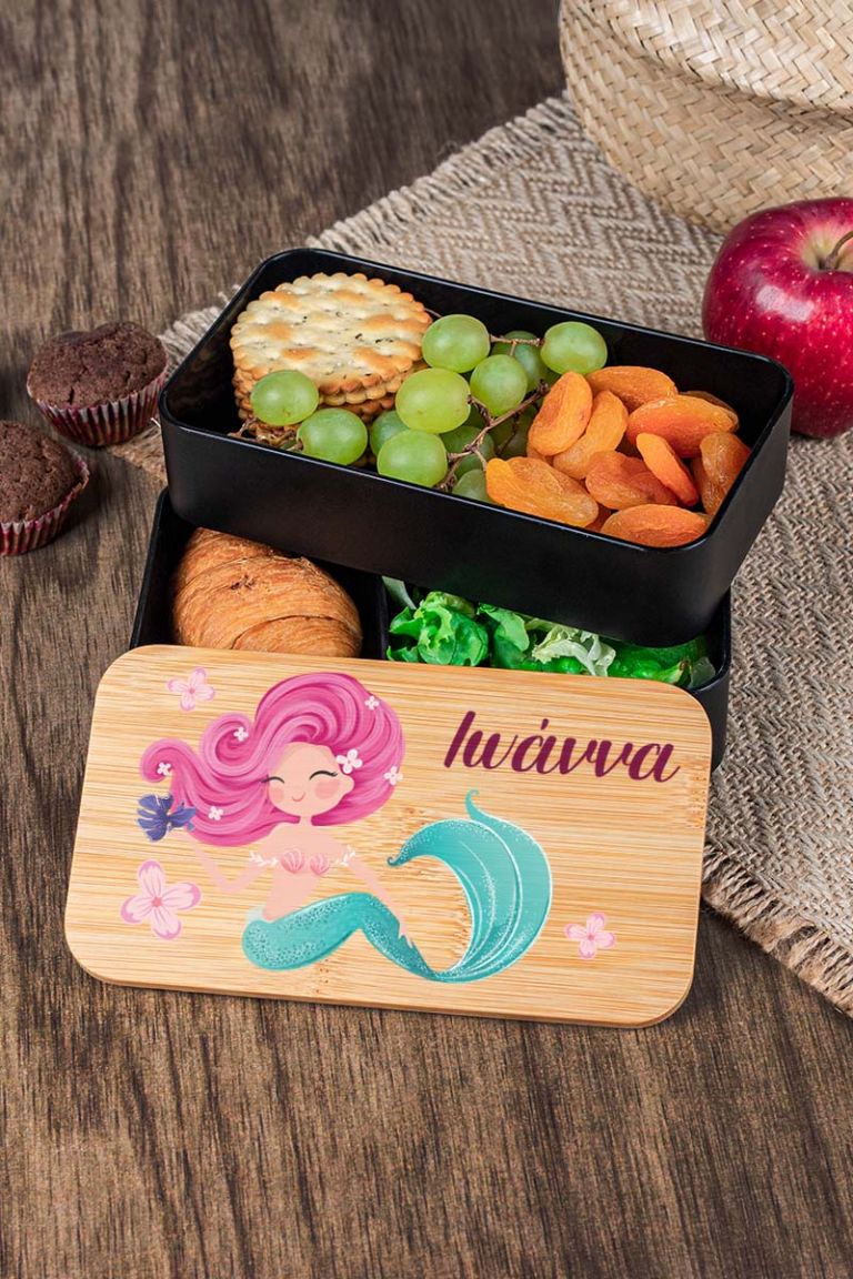 Δοχείου Φαγητού 2 Επιπέδων, με το Όνομα του Παιδιού, Joyful Mermaid