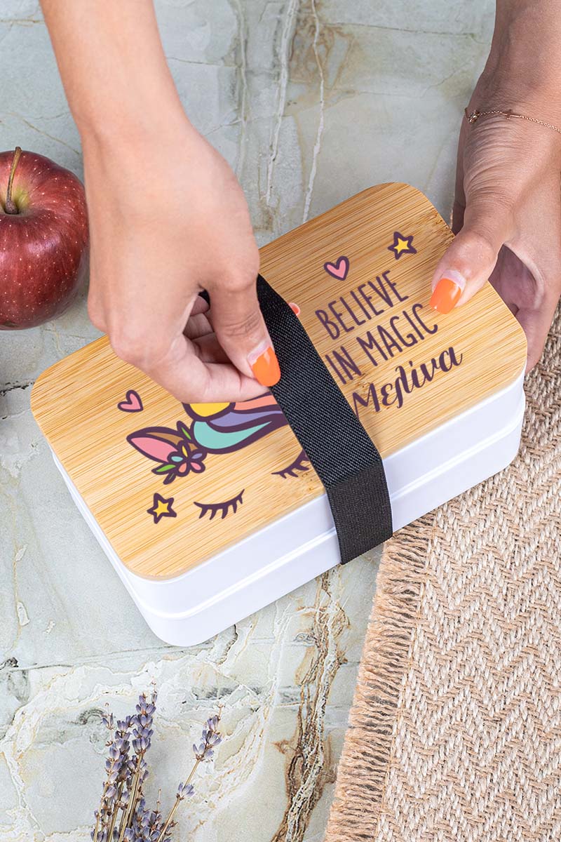 Παιδικό δοχείο φαγητού υψηλής ποιότητας, με 2 επιπέδα & εκτυπωμένο το όνομα του παιδιού ώστε να το ξεχωρίζει στο σχολείο!