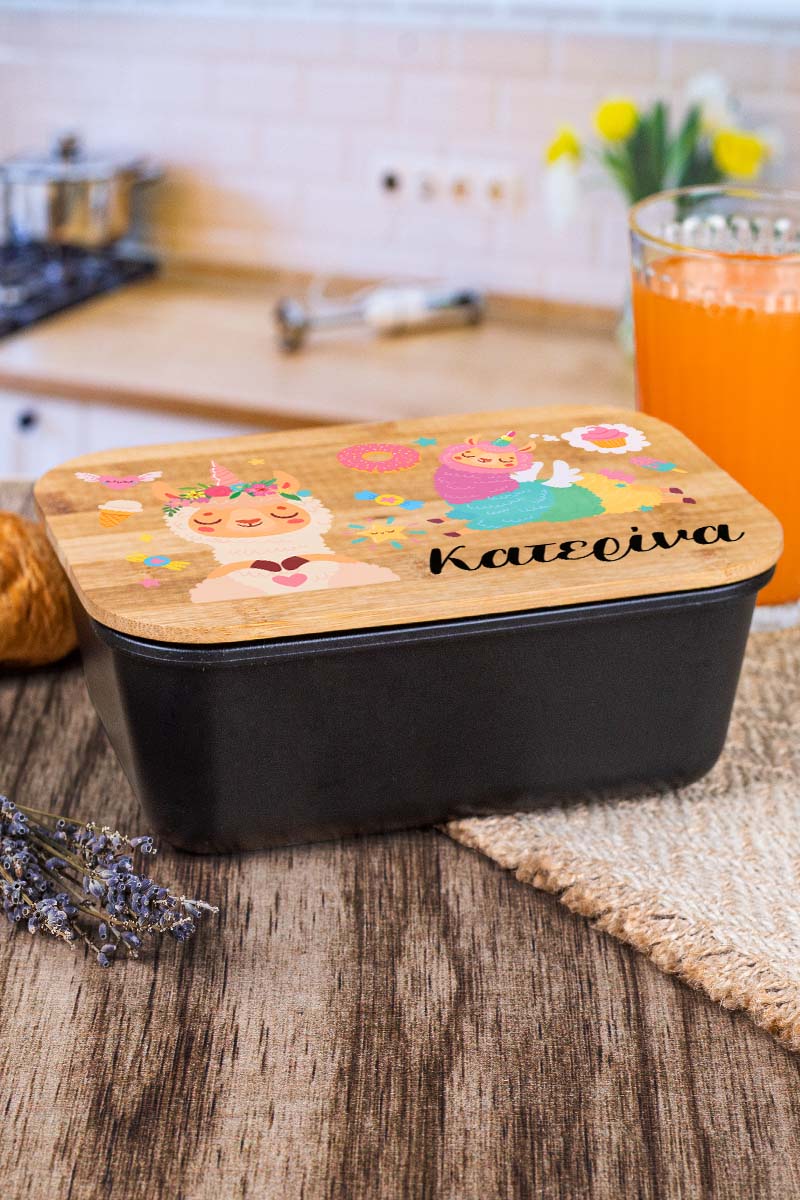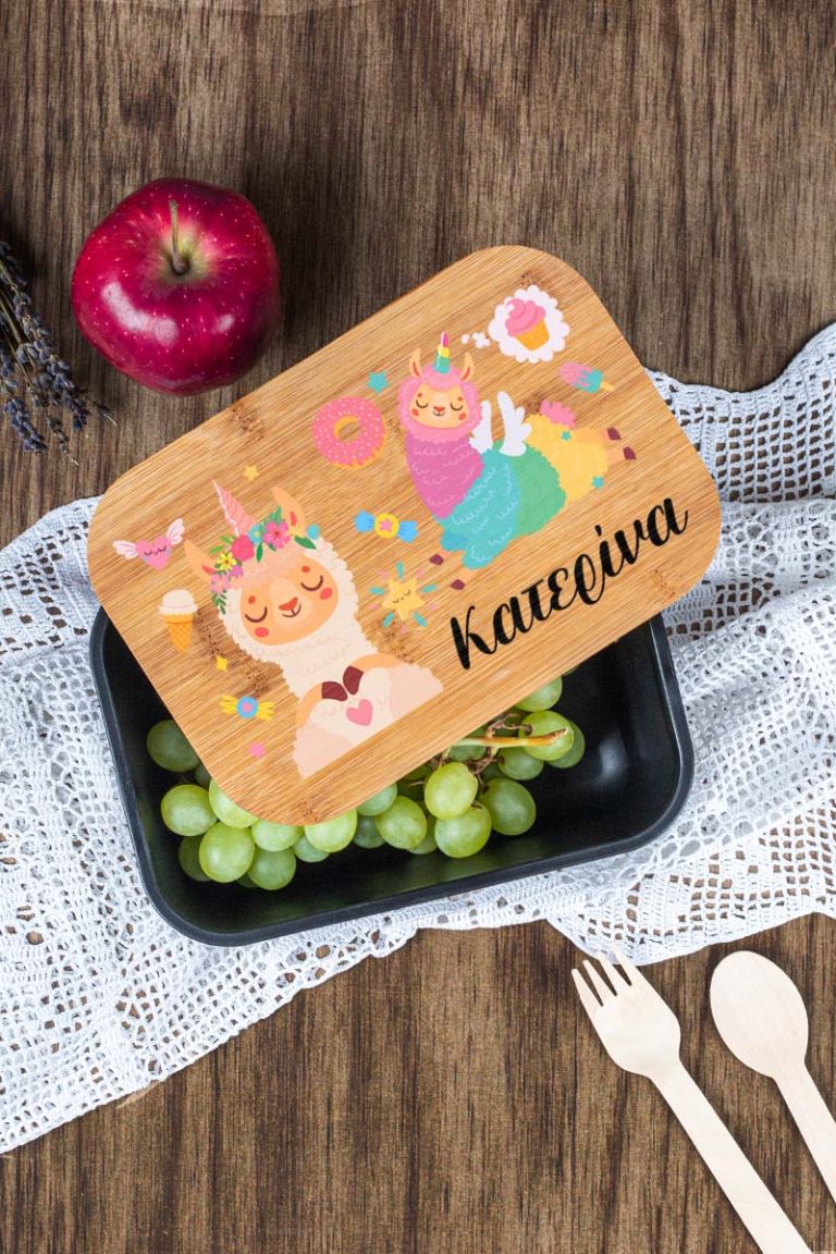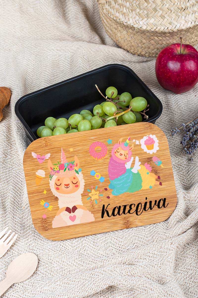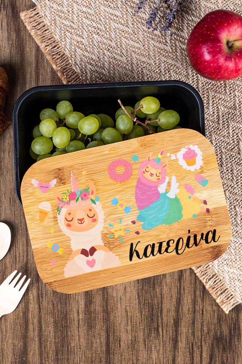 Παιδικό Δοχείο Φαγητού με το Όνομα του Παιδιού, Lama Party