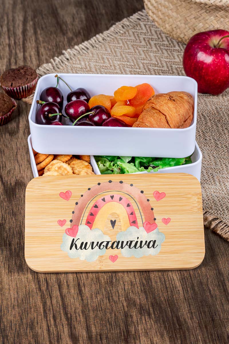 Παιδικό δοχείο φαγητού υψηλής ποιότητας, με 2 επιπέδα & εκτυπωμένο το όνομα του παιδιού ώστε να το ξεχωρίζει στο σχολείο!