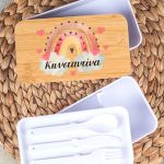 Παιδικό δοχείο φαγητού 2 επιπέδων με μαχαιροπήρουνα & καπάκι από μπαμπού!